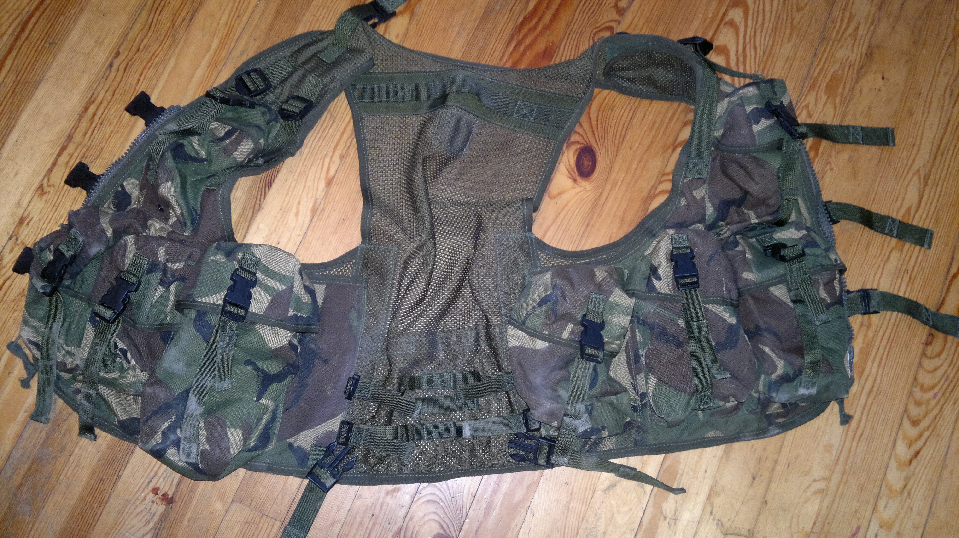 Lahingvest, briti laik, 2 salvetaskut 6-le salvele, 4 suuremat ja 2 väiksemat varustuse taskut, taskud fikseeritud, lisaks veel põuetaskud mõlemal pool, kantud paar korda rännakul. Hind 50.-