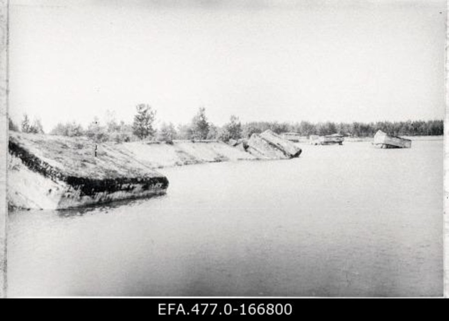 Sinisega märgitud punkrid (üks ka fotol) on kohe tee ääres, samuti üks purustatud varjend.