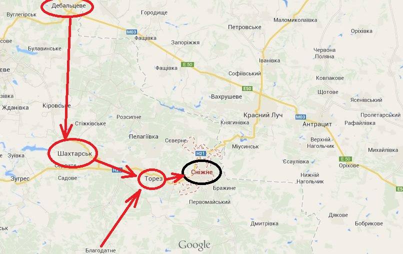 Huvitav siis tõmbasid Debaltsvost läbi Antratsiidi maanteele, siis paremale Nikišino > Petropavlovka > Stožkovskoje > Šahtjorsk?