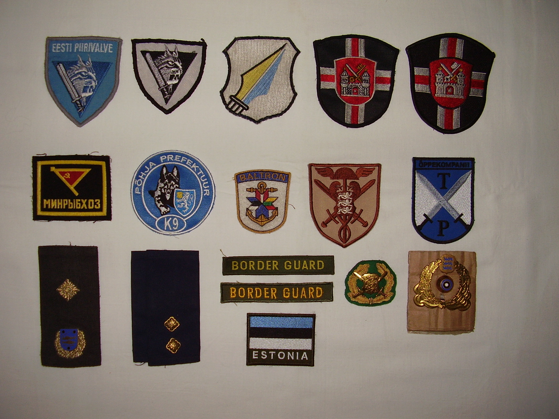 PS: vaadates fotosid tolelst ajast tundub, et päris ühtset embleemide kandmise korda polnud - poolkaares embleemi "Piiriteenistus" on kantud ka rinnal, mõnikord on regiooni tähis KK embleemi kohal, mõnikord on KK embleem üldse ilma lisaembleemita jne.