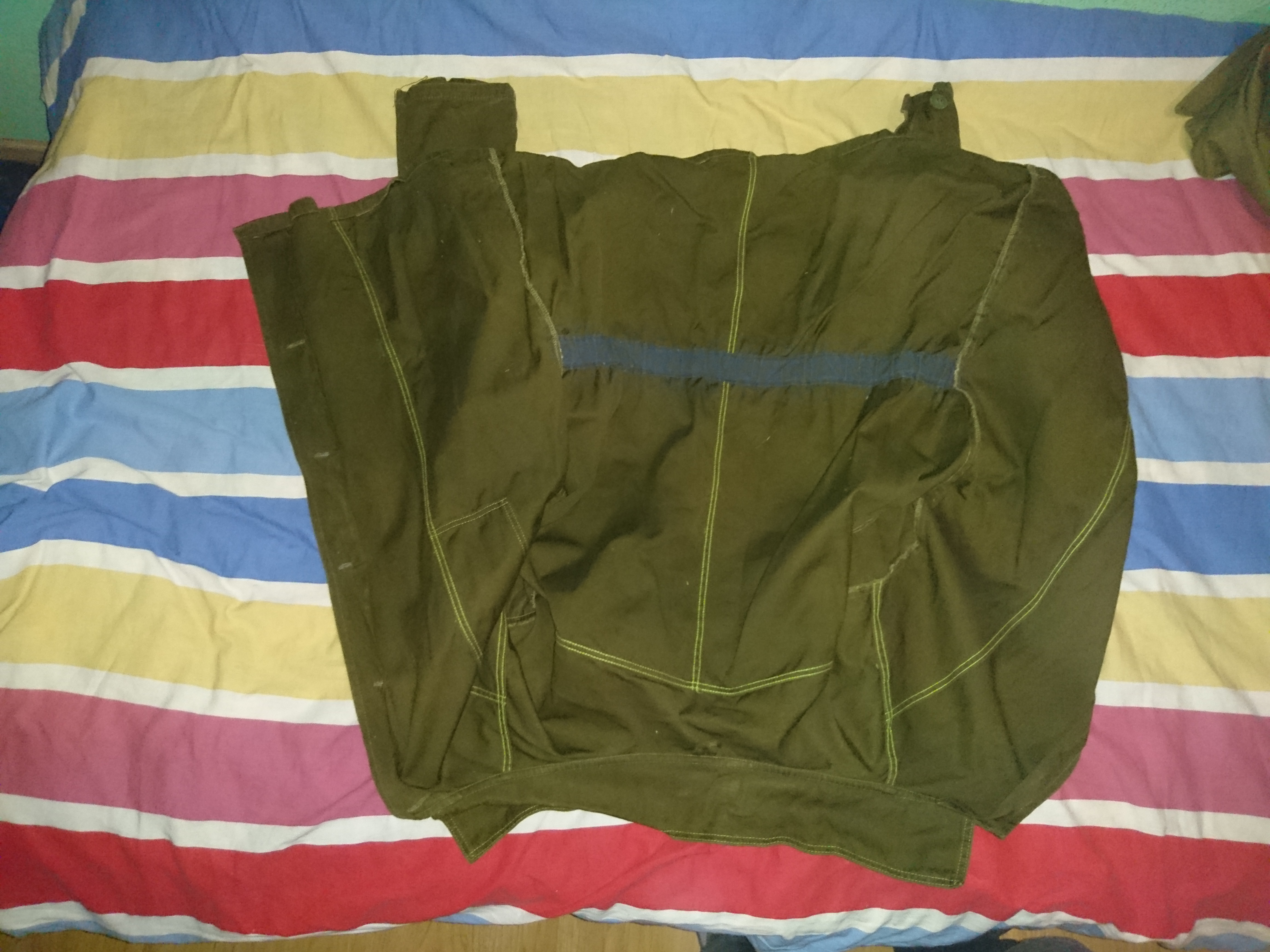 Jäi pööningult silma õnnetu frentšijäänus, tundub olevat justkui EW aegne kuub, millest on üritatud midagi saksa M44 sarnast jakki teha...Igatahes on see lühemaks lõigatud ja nööbid kõik tsiviil. Targemad võivad ka sõna sekka öelda. Üldiselt on väga kehvas seisukorras a pimedamasse nurka "metsavennakratile" võibolla passiks veel selga ka, kui keegi sellist "kratti" juhtub tegema :roll