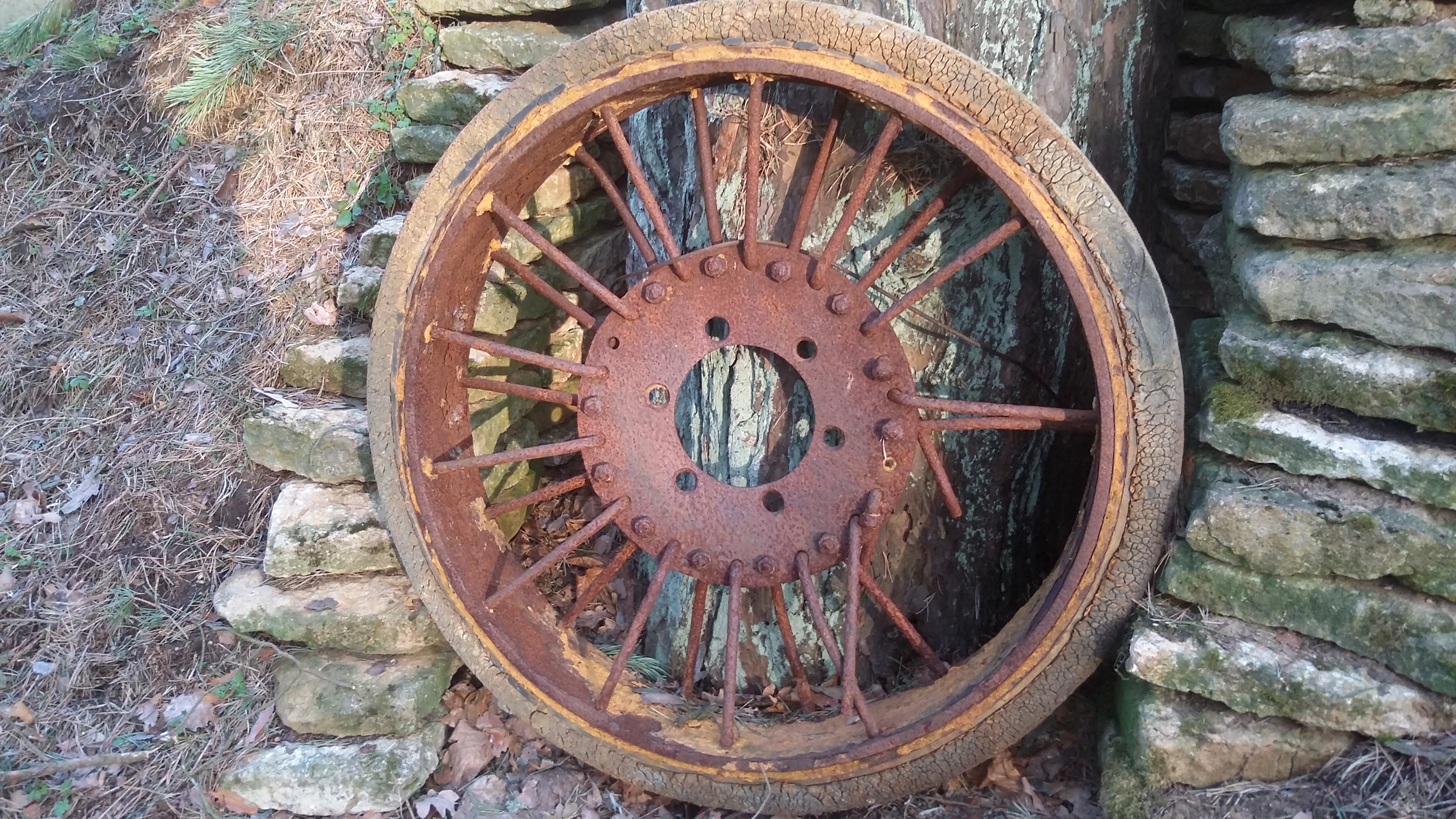 Eeldan, et see võiks pärineda teise ilmasõja eelsest perioodist. Ratta läbimõõt on 700 mm, pöia laius 150. Täiskummist rehviosal on nähtavad üksikud ladina tähed. Kuid küljed sedavõrd kriimustatud, et sõna kokku ei loe. Kas veoauto, soomusauto ...