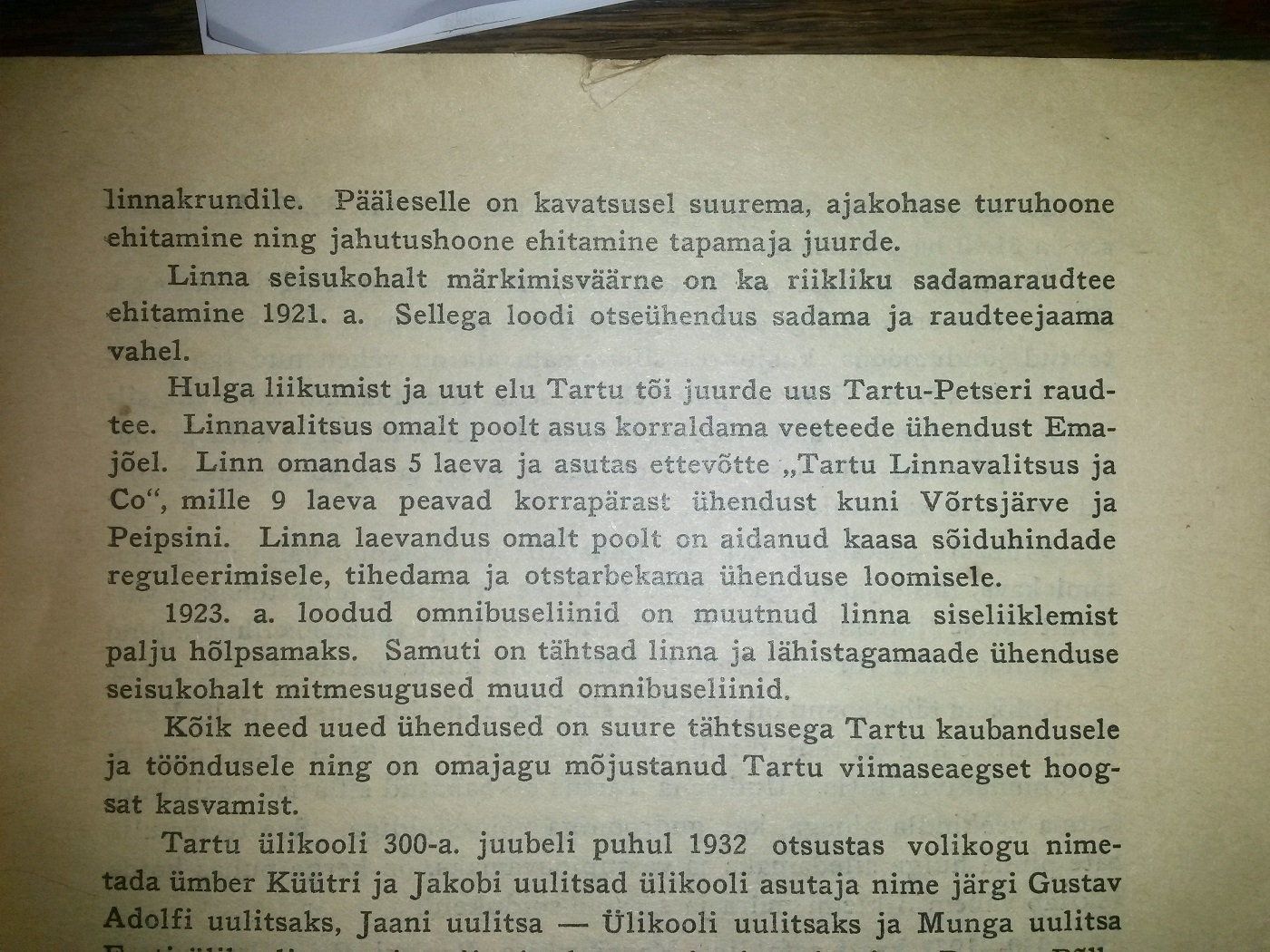 Raamatust "Lühike ülevaade Tartu linnaomavalitsuse tegevusest 1919-1933."