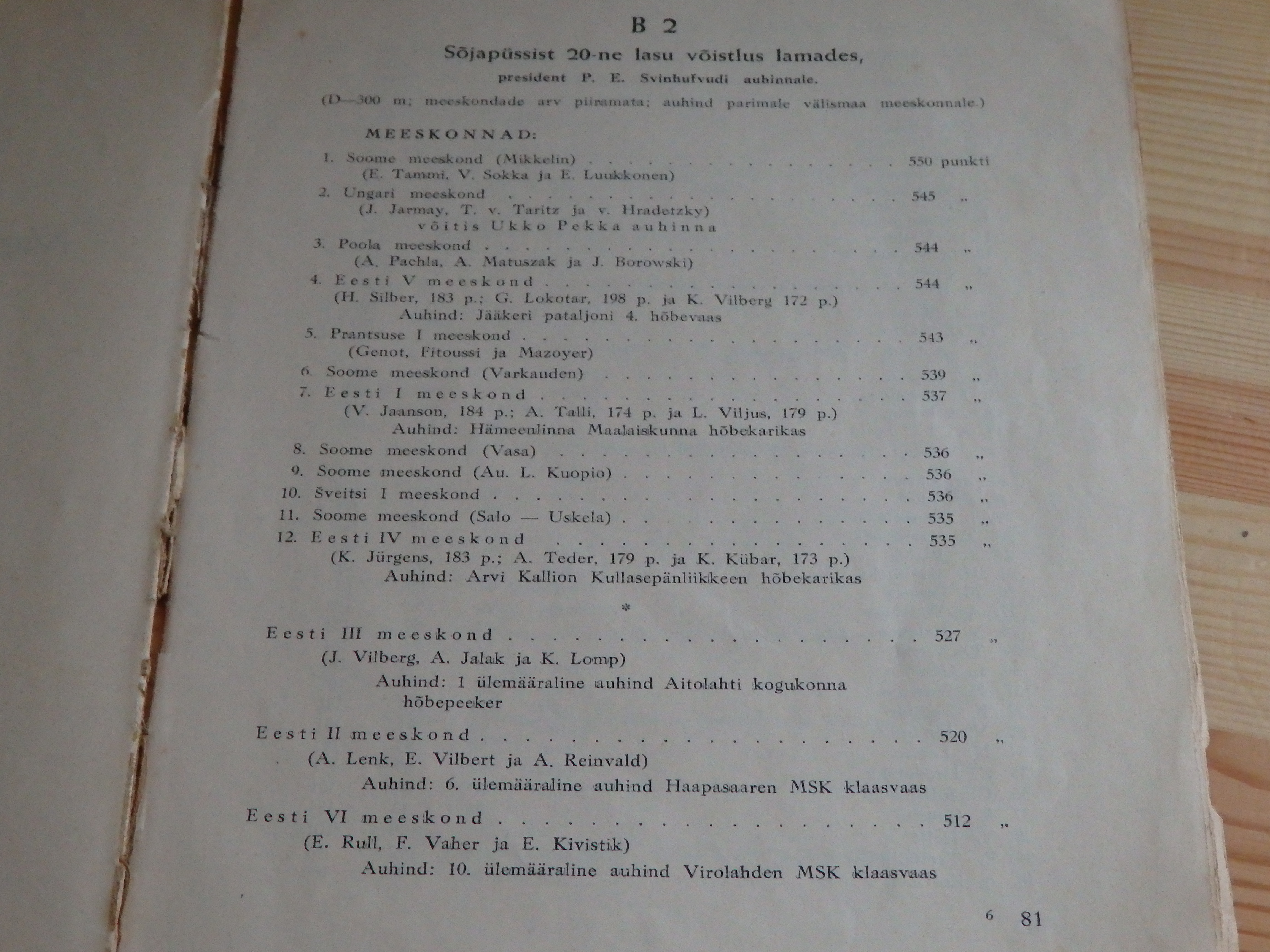 ISE KÜSIN -ISE VASTAN :) `` Eesti laskurid rahvusvahelistel laskevõistlustel 1931-1937 `` Välja antud 1938