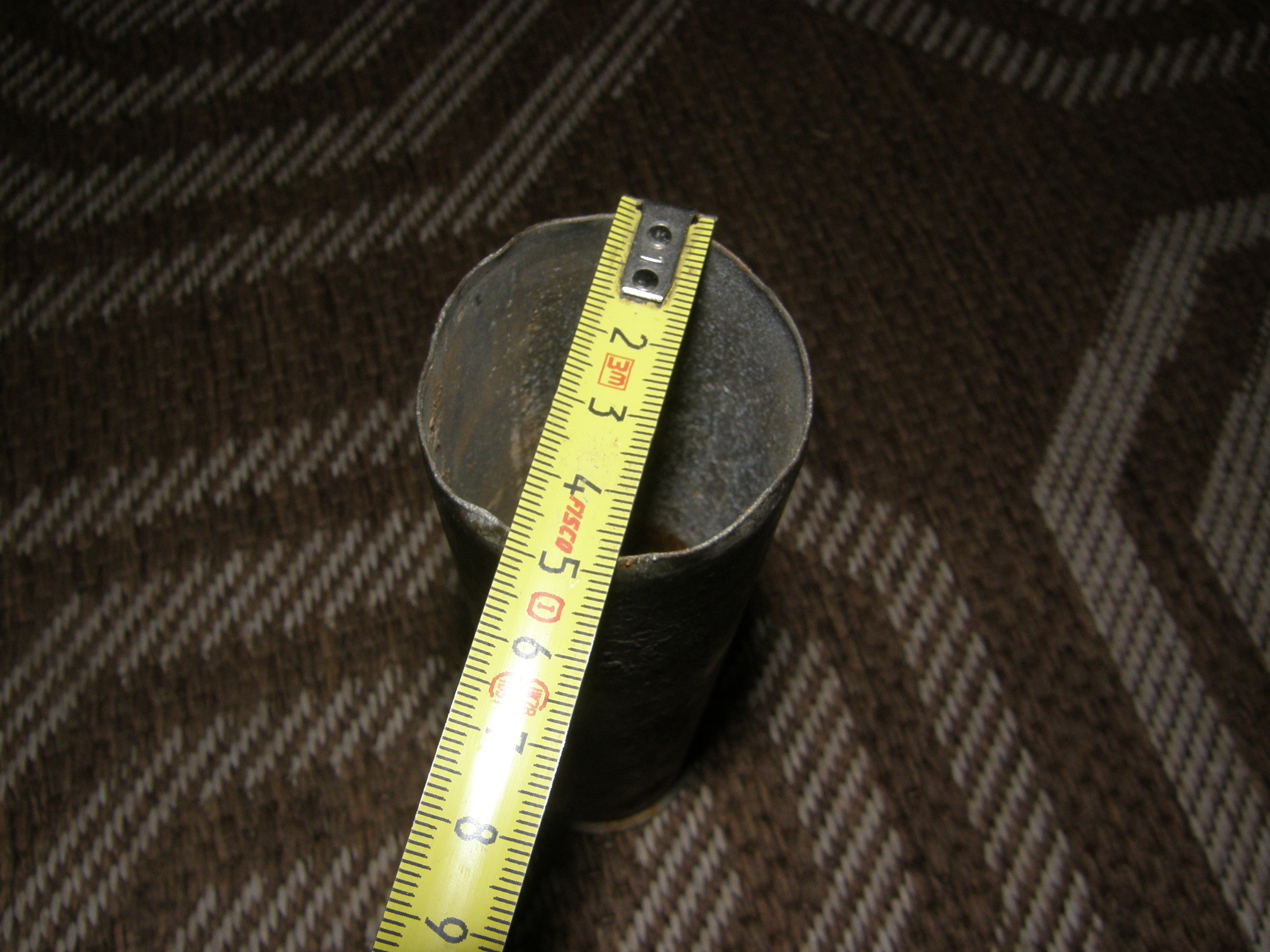 Pikkus 7cm, kaal 1kg, seega vägagi raske sellise väikse asja kohta. Ehk mingi suurema "kuuli" sisu? Nöörloodi raskus käis ka peast läbi, aga mingit nööri kinnitamise kohta pole.