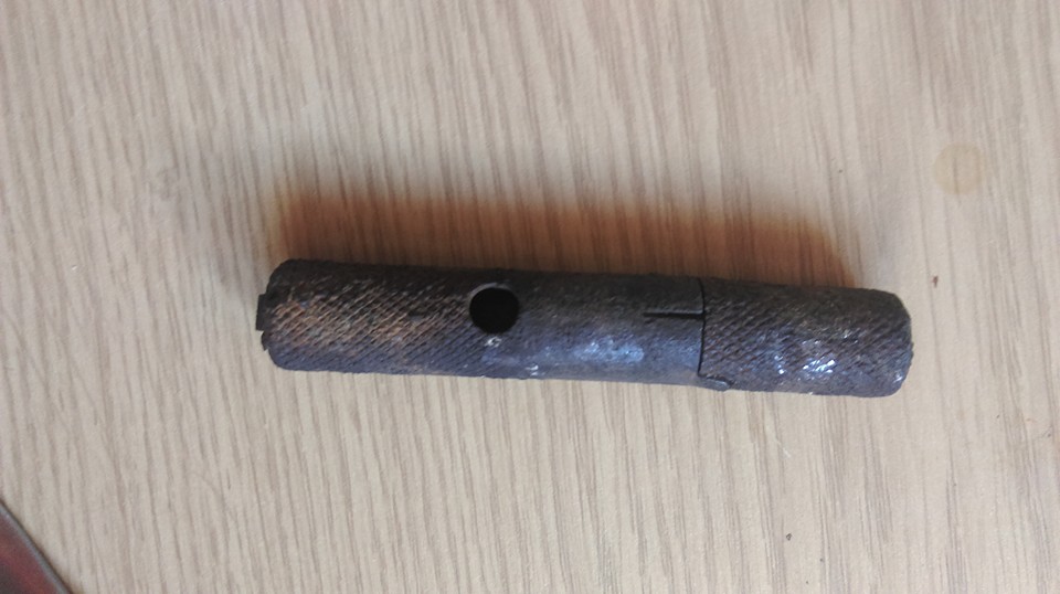 Millega võiks olla tegu? Tundub mingi relva puhastuskomplekti kuuluvana, aga see on paljas oletus. Asi ise alumisel pildil, ülemine on lisatud mõõtudest aru saamiseks.