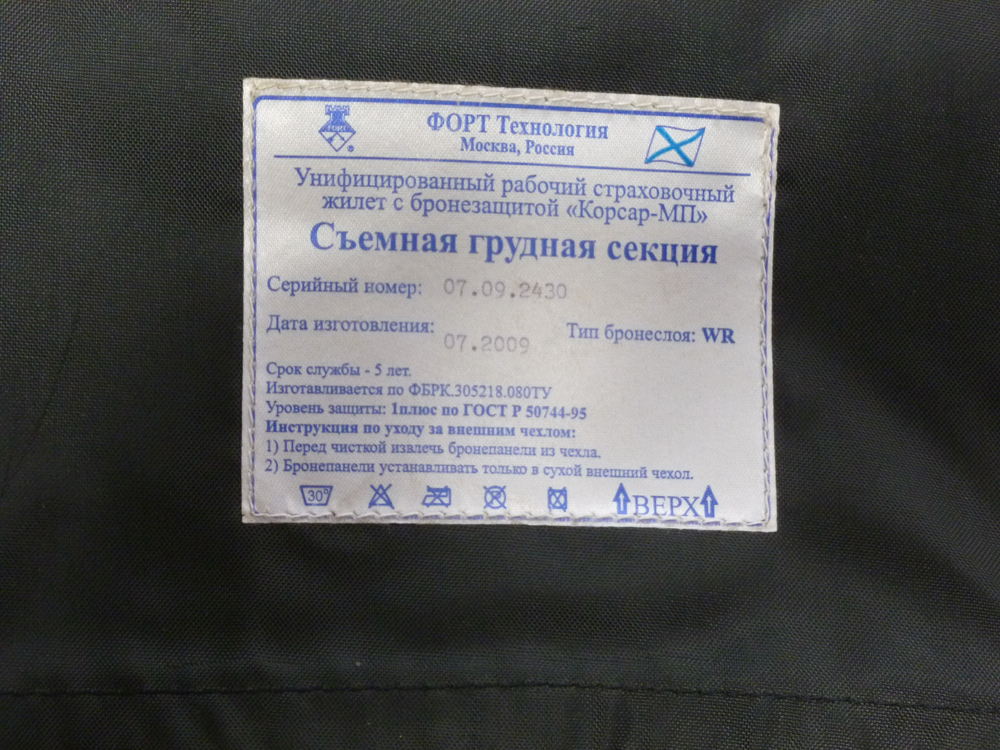 Soomlaste baasvest kaalub siis IIIA kaitsega suuruses L 4,4 kg ja selle saab muidugi kuulikaitseplaadid juurde osta. Vest ise maksab 700-800 € ja kuulikindlad plaadid III ja III+ tasemel olenevalt materjalist 200-400 € tükist, nii et kui veel mõned lisaplaadid võtta, näiteks kubeme ja õlgade kaitse, on 2000 € komplekti hinnaks kiire tulema. See on ka põhjus, miks selliseid veste tellitakse väikeseid koguseid väga erilistele klientidele, et hind on 2-3x tavalisest kaitsevestist kallimad, sest päästevest on suhteliselt odav. Tänapäeva päästevestid on tehtud materjalidest, mis ei tühjene vigastuse korral ja need on kaalu järgi, nii et võitleja kaalule on vaja liita varustuse kaal ja saabki vajaliku päästevesti taseme. Lisasin ka pildi, millel on näha, kuidas Korsaar on veekindlaks tehtud, kaitsematerjali plaadid on lihtsalt kile sisse topitud, tavaliselt on killukaitsematerjal nailoni sisse pakitud, kuid kui päris ujuma minna, on vaja veekindlamat materjali. Huvitav oleks teada, mis hinnaga venelased seda merejalaväele ostavad?