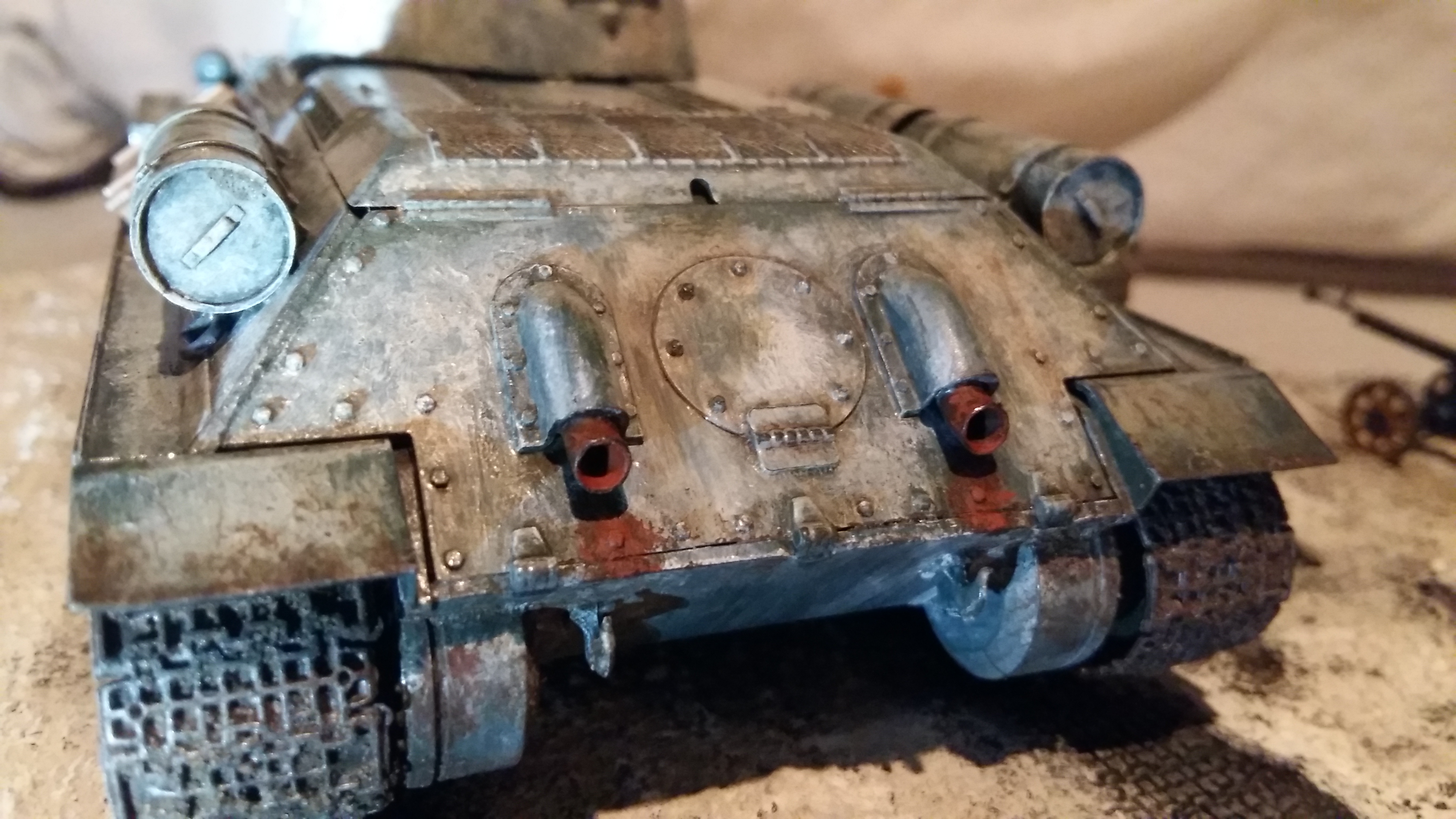 Ainuke puudus et sumpsist oleks tankikorpusele nagu roostes vett tilkunud.... Tilk musta mattvärvi sumpsiauku ja väheke (mattmusta värviga) kuivapintsliga korpuse töötlust parandaks muljet märgatavalt.