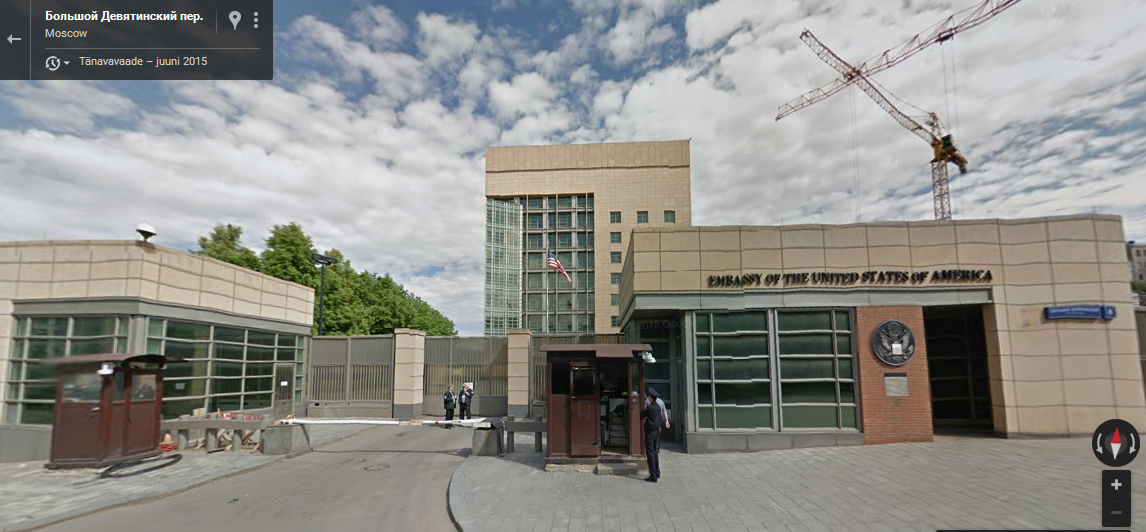Googeldasin ning selgus, et vanal USA saatkonnal Moskvas on parem poolne sissepääs sarnane videos nähtuga, kuid ikkagi teine. Pole treppi ja seinad teistsugused. Uus saatkond on perimeetriga ning kindlasti mitte see, mis videos näha.