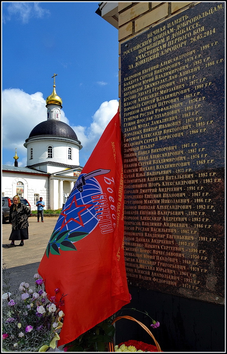 Moskva oblastis püstitati mälestusmärk 2014.-nda aasta 26.-ndal mail Donetski lennujaama rünnanud ja hukkunud vene kodakondsetele. Väidetavalt vabatahtlikud.