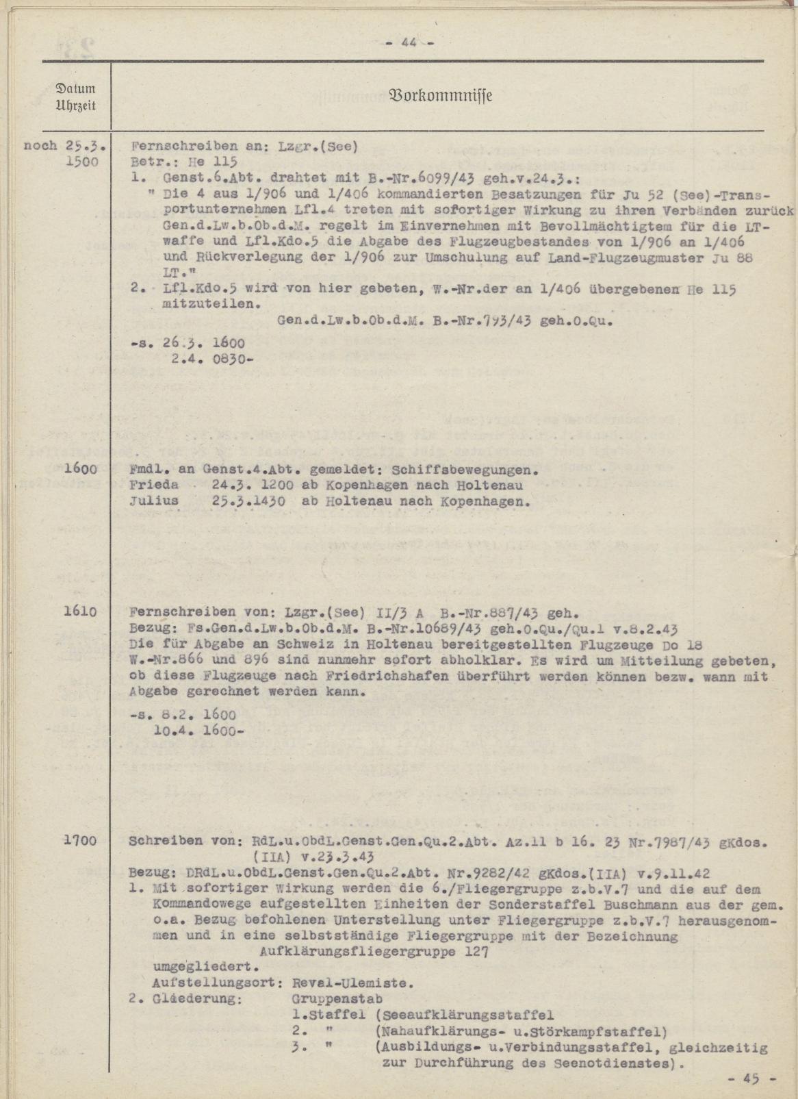 Gem. Ob.d.L.Gen.Qu.2.Abt.Az 11 b 1623 Nr. 7987 Gkdos II a v.23.3.43 wird mit sofortiger Wirkung 6./Fliegergruppe z.b.V.7 (Sonderstaffel Buschmann) in eine selbstständige Fliegergruppe mit Bezeichnung Aufklärungsfliegergruppe 127 umgegliedert.