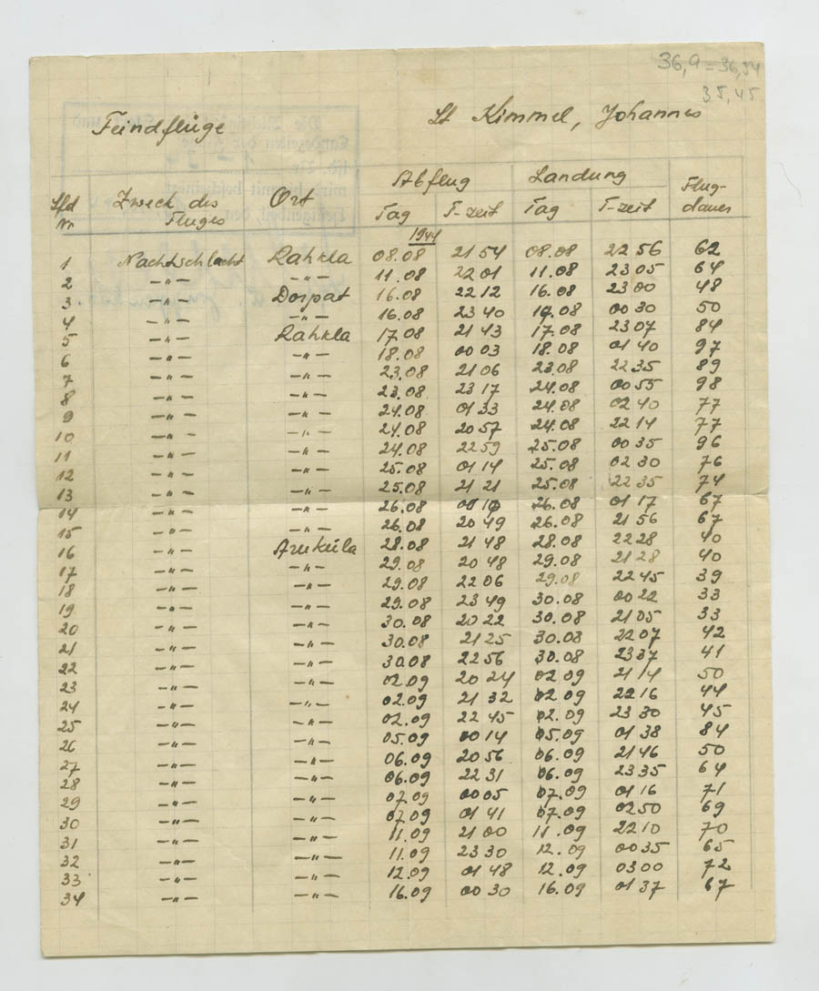 Johannes Kimmeli lennud augustis/septembris 1944.a. kõrvalfoorumilt: