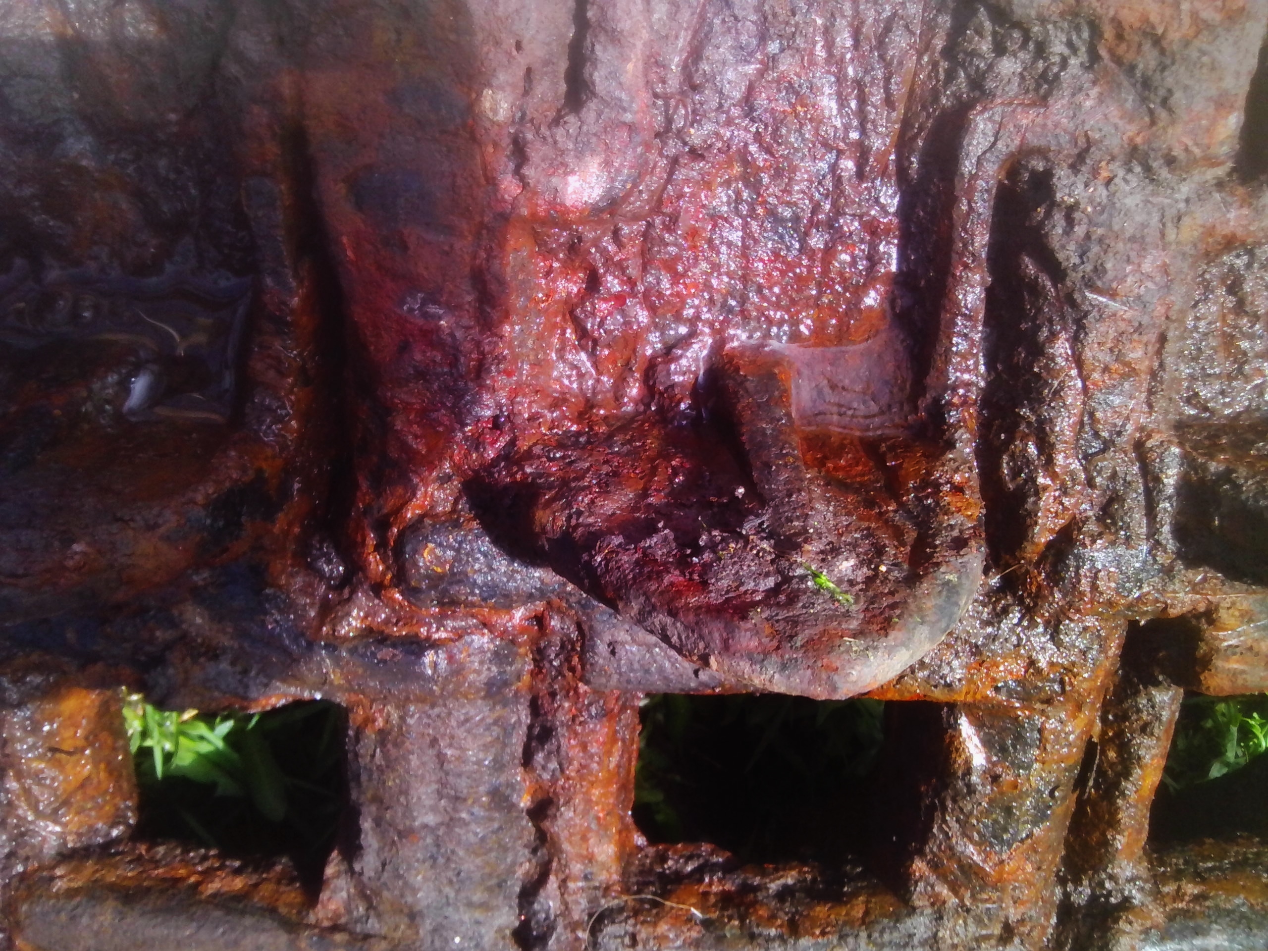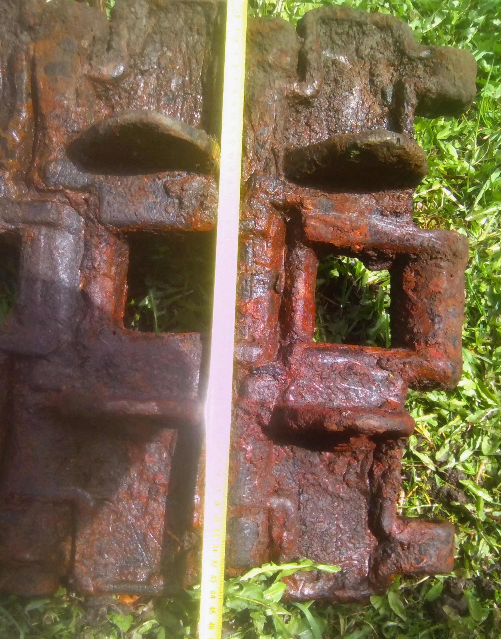 Ära hakka sealt roostet maha võtma. See, et loodad sealt leida mingeid märkeid võib antud lülid ära rikkuda. Kui sa ei tea, kuidas neid puhastada võib kahjulikum olla. Pane need lihtsalt veega puhastatuna ja tee pilti sellest. Kõik.