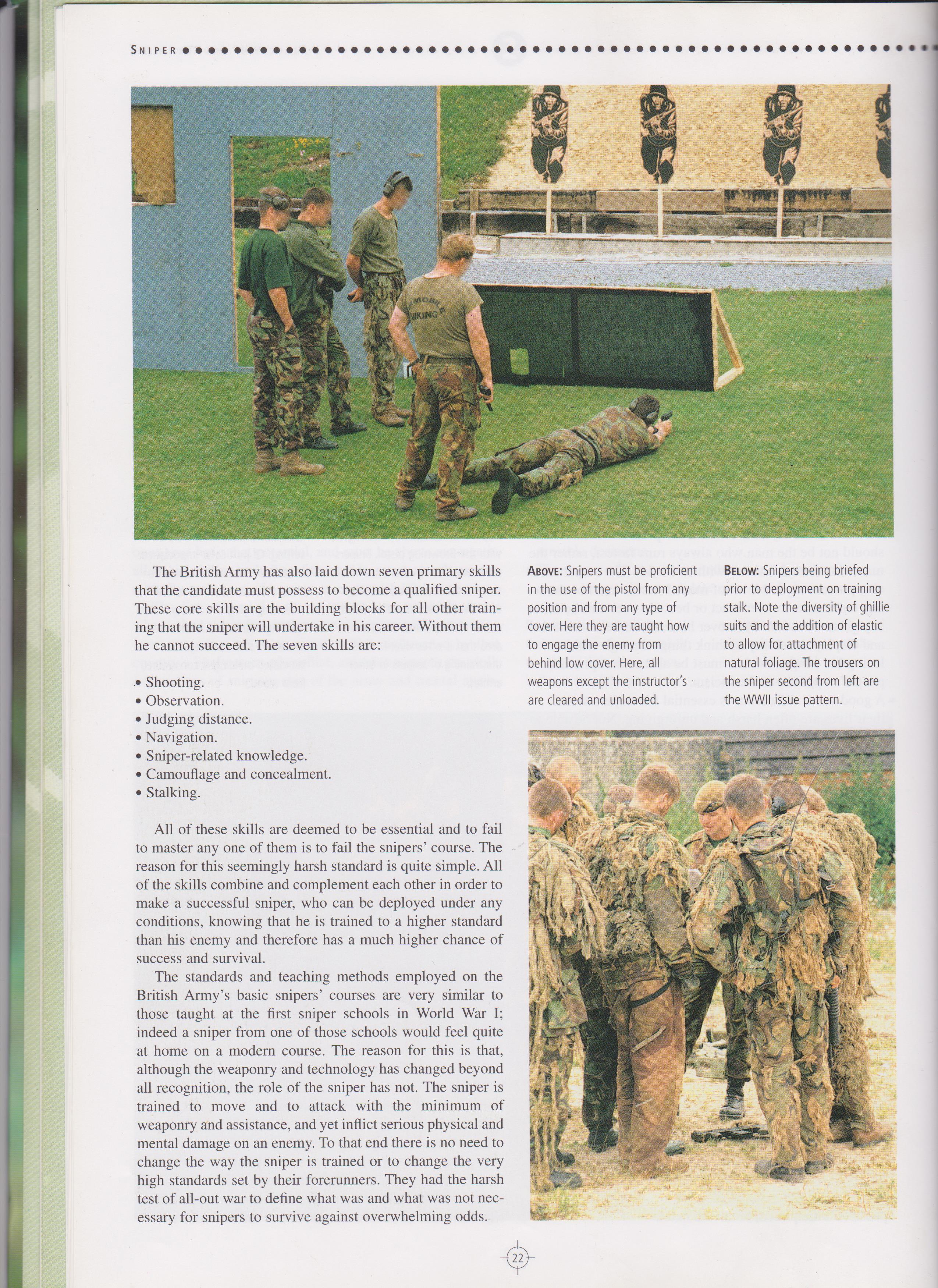https://youtu.be/qFGwPMFTi80?t=22m41s Usa snaiprikooli instruktor ütleb, et ainult täpselt laskmine on täpsuslaskurite teema. Snaiper peab lisaks sellele suutma märkamatult liikuda positsioonile, tegema lasu ning eemalduma.madiss kirjutas:Snaipri puhul on kõige tähtsam oskus laskeoskus, alles seejärel tulevad positsioonile liikmine, positsiooni valik, maskeerimine, topograafia, füüsiline vorm ja muu sarnane sekundaarne jura. Need on lihtsamini arendatavad oskused aga kui ikka inimene lasta ei oska siis ta ei ole snaipriks sobilik ja kui selleks vajalikud eeldused puuduvad siis ei olegi midagi teha.