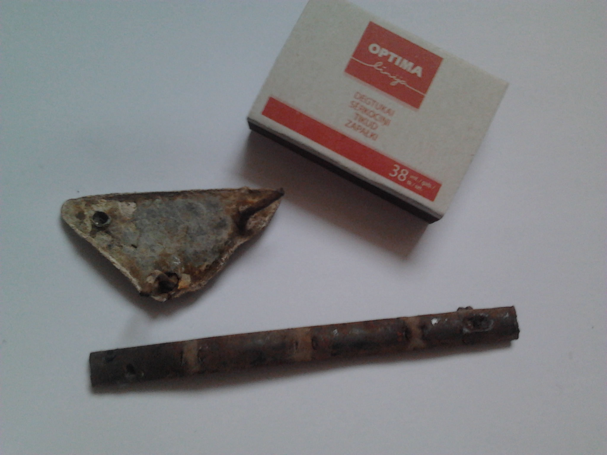 Siis leitud selline huvitav kolme kinnitusega märk, millest üks naga kadunud, tunne on, et peaks käima kuhugi riidevärgi külge. Esimese hooga oleks mütsimärgiks pakkunud. Leitud militaarse taustaga metsast. Oskab keegi midagi arvata? Samast piirkonnast, mitte kaugelt eemalt ka üks autasu lindiliist, see peaks vene oma olema. Kolooda 99% tõenäosusega kaotatud 1941 kablutamisel Tallinna suunal.