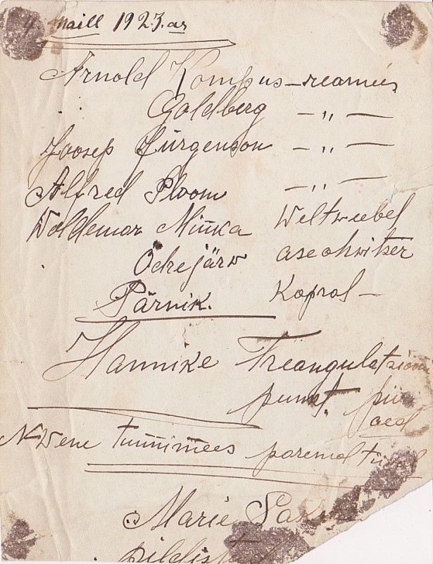 Pildi tagaküljel on kirjutatud pildistamise järgselt nimed.
