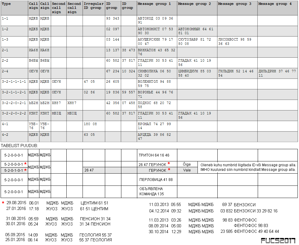 Siin on inglise keeles lahti seletatud/spekuleeritud erinevate ЖУОЗ teadete formaatide kohta.