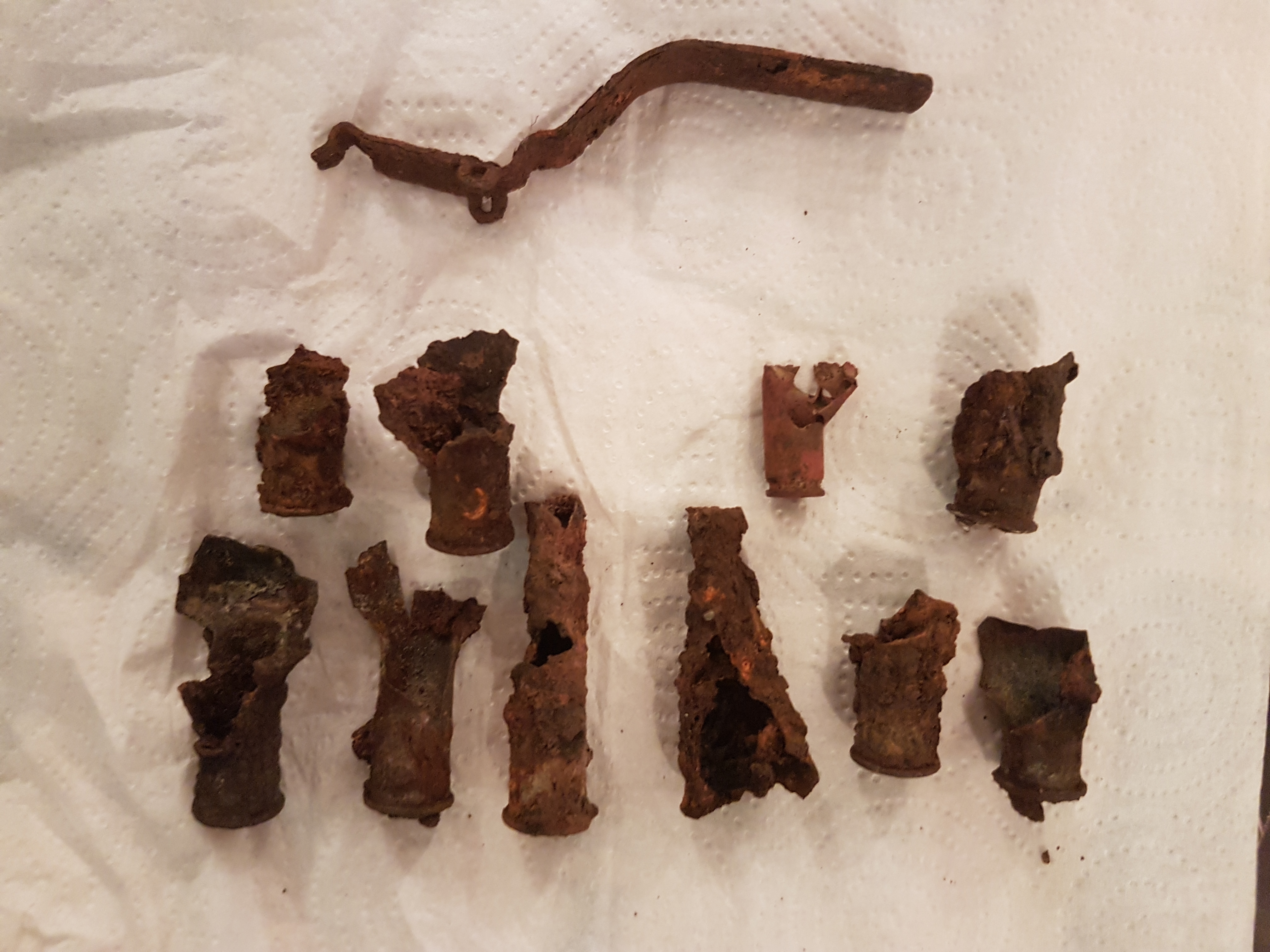 Taniel, kui sa tahad asjaga tõsisemalt tegeleda, siis dokumenteeri korralikult oma leiud. Kui sa seda seni teinud ei ole, mine praegu maastikule tagasi ja tee ära. Hiljem sa enam seda ei suuda, kui leiud on pool aastat kuskil seisnud. Iga leiu või leiupesa kohta võta GPS koordinaadid ja lühikirjeldus (näiteks "püstolipadruni kest markeeringuga nii ja naa, lööknõela jälg komakujuline (TT?), koordinaat x, koordinaat y"). Tee niisugune tabel. Leiud pane minigrippidesse, kuhu kirjuta veekindla markeriga numbrid peale.