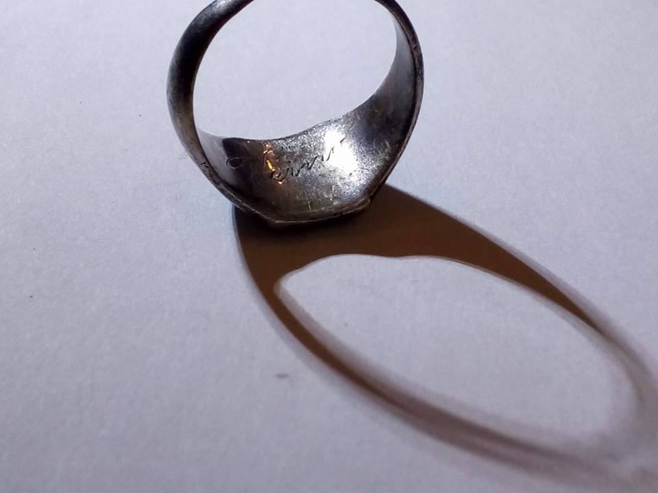 Tegemist tugevast hõbedast sõrmusega ja sees on nimi või sümboli nimi "Veino".