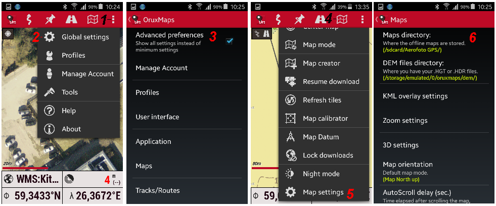 Kuna LocusFree on kohati suht pirtsakas (nt. teade "Tasuta versiooni limiit (250 kaardiosa ühe seansi kohta) on ületatud") ja üritab sind veenda ostma LocusPro rakendust, siis keskendun siin OruxMaps rakendusele.