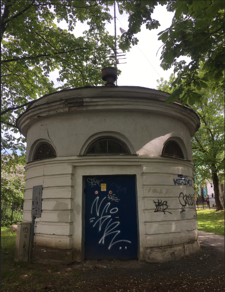 Pakun et akendega "tünn" võib olla varjendi sissepääs. Samasugused majakesed asuvad ka Väike-Ameerika tänaval (kus gaasijaotla), Hirvepargis ja Lasnamäe postimaja juures, Lasnamäel on selle all tunneli moodi varjend.
