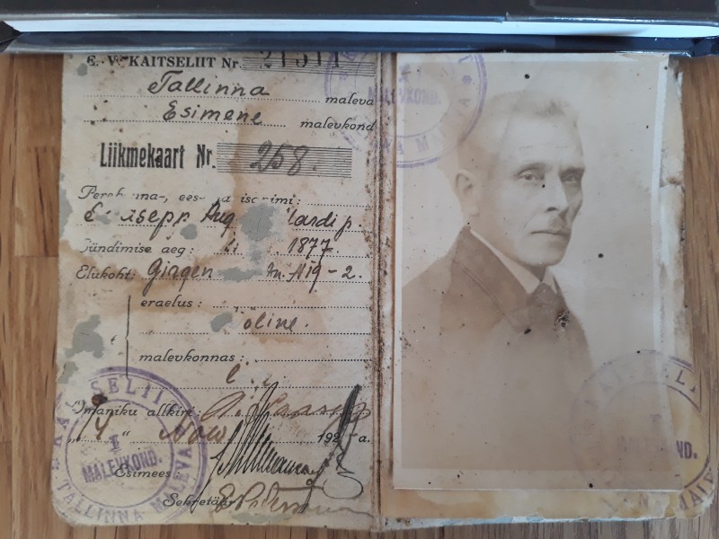 Naabritädi maja remondi käigus leiti piltidel nähtav Kaitseliidu liikmekaart aastast 1928. Mis temaga edasi nüüd teha, et ta ajaloo tolmu alla ei mattuks? Kellele ja kuhu pakkuda?