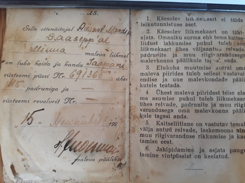 Re: Kaitseliidu liikmekaart aastast 1928 - August Saasepp