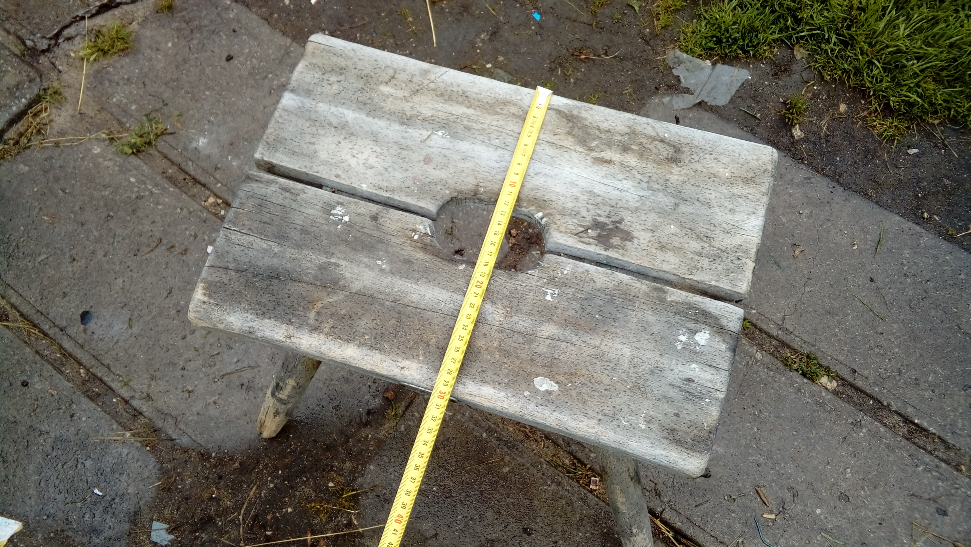 Ise sinna ei saanud, aga saadeti mõned pildid. Pink on ise puhas puutöö, sest ainus metall on silt koos kahe naelaga.