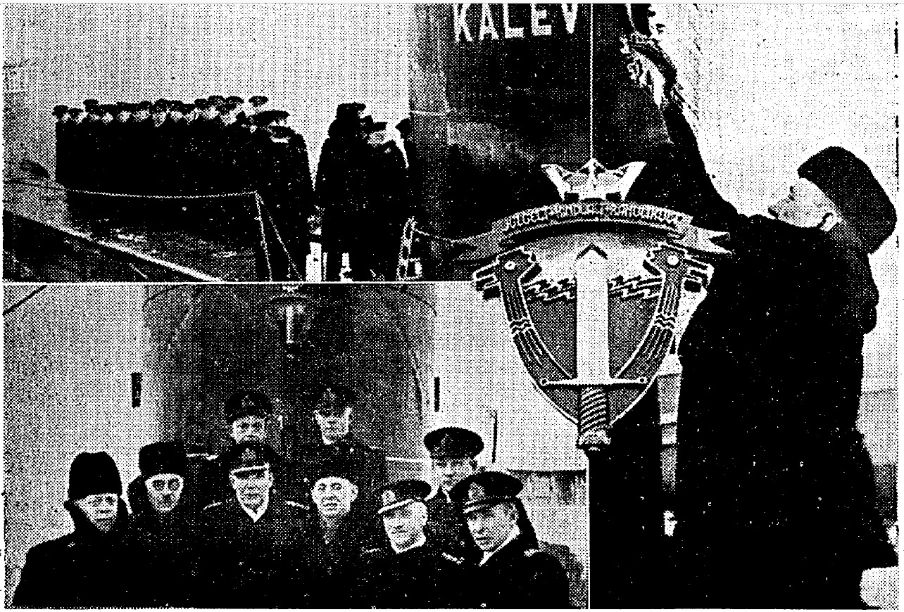 Selle Website'i ajalehe artiklis, Järva Teatajas, Nr. 9, 22 jaanuar 1940, on kirjutatud, et metallitööstus A/S "Aivarz" kinkis EW allveelaeva "Kalevile" vapi, mida kinnitati siis alveelaeva esiküljele. Kahjuks, artiklile lisatud foto on nii kehva kvaliteediga, et ta ei ole mulle palju abiks, kui soovin sellest vappist ühte värvitahvlit valmistada.