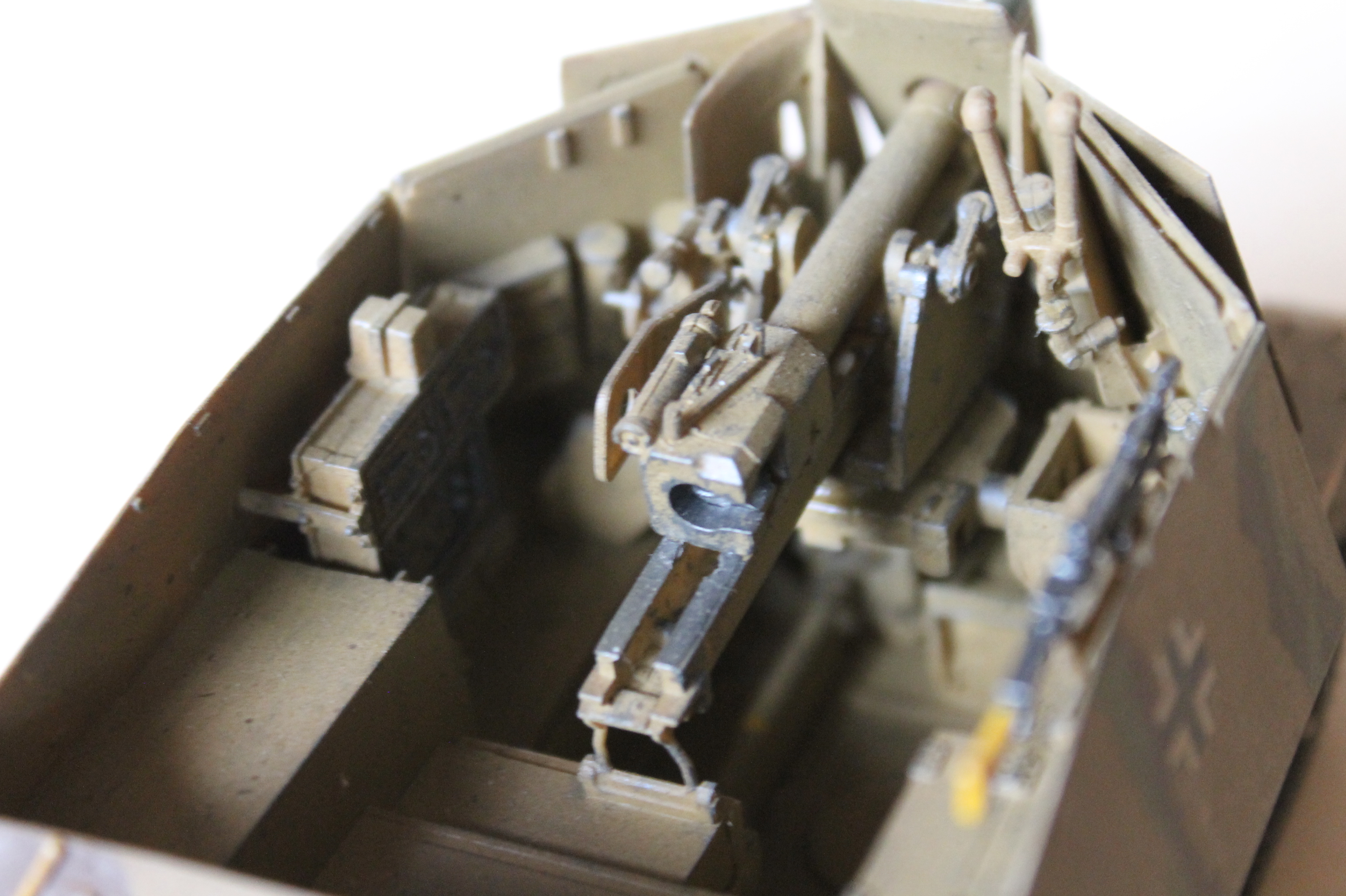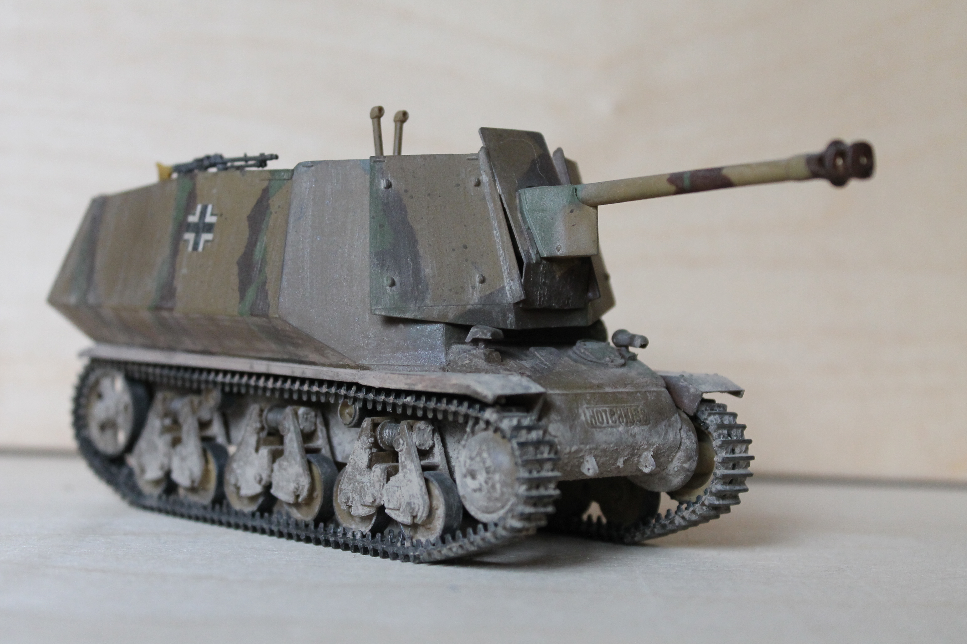 Minu jaoks suhteliselt ebaõnnestunud masin, pole tulemusega üldse rahul on siis esimene pika nimega masin "Geschutzpanzer 39H(f) 7.5cm PaK 40 Hotchkiss" ehk siis Marder I. Tegu Trumpeteri toodanguga, millele läksid alla kaasas olnud kummipaelad (roomikud). Pulbriga imiteeritud pori näeb päris hea välja, kuid sumpsi rooste on vähke liiga punakas, eks näis mis järgmiste masinate juures saab. Pilte ka: