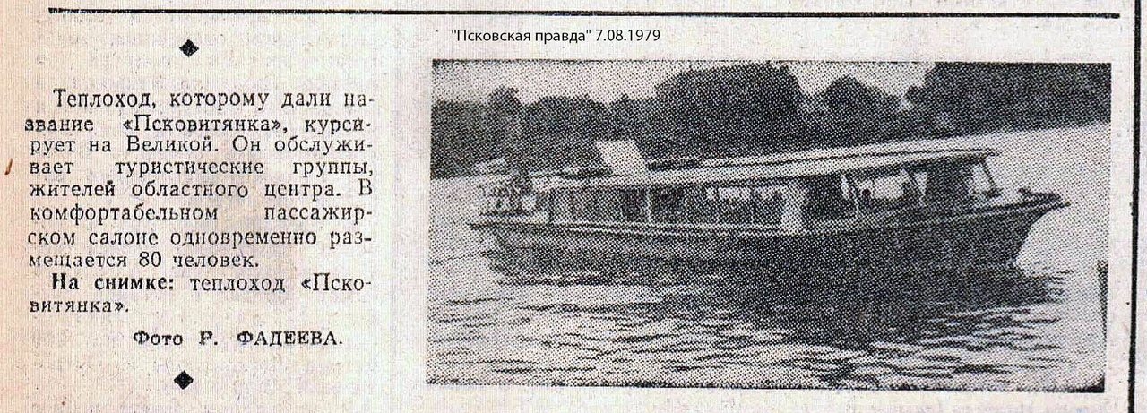 Kõigepealt pihkvalaste Fontanka nimega "Pskovitjanka". Seda olen Pihkvas ka oma silmaga näinud Ja "Lermontovi" kurb eluõhtu... pilt kahjuks dateerimata, aga pärit ühe Pihkva 2001.a. väljaande mingist artiklist. See muidugi ei tähenda, et sama aasta foto. Kui kodanik Kilk oli 1997.a. naabrite juures laeva saatuse kohta küsinud (äkki on niipalju säilinud, et saaks korda teha ja sõitma panna), oli seal käsi laiutatud ja öeldud, et "Bolše netu"