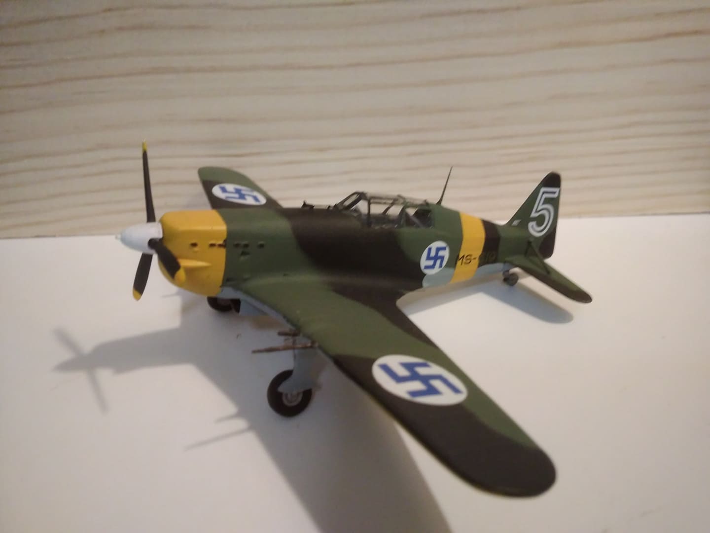 Esmalt siis MS410 (ehk siis erinevus MS406-st on see fikseeritud kõhu all olev õliradiaator ja tiibades 4 kuulipildujat pluss tugevamad tiivad jne). Tootja oli AZUR, 1/72. Soome õhujõududes oli II MS lõppedes kokku 87 MS tüüpi lennukit (neist 11 olid siis MS410, ülejäänud MS406). Kulla sihikuga läks pisut viltu...ja mõne dekaali suutsin ka Micro Soliga liiga läbi niisutada.