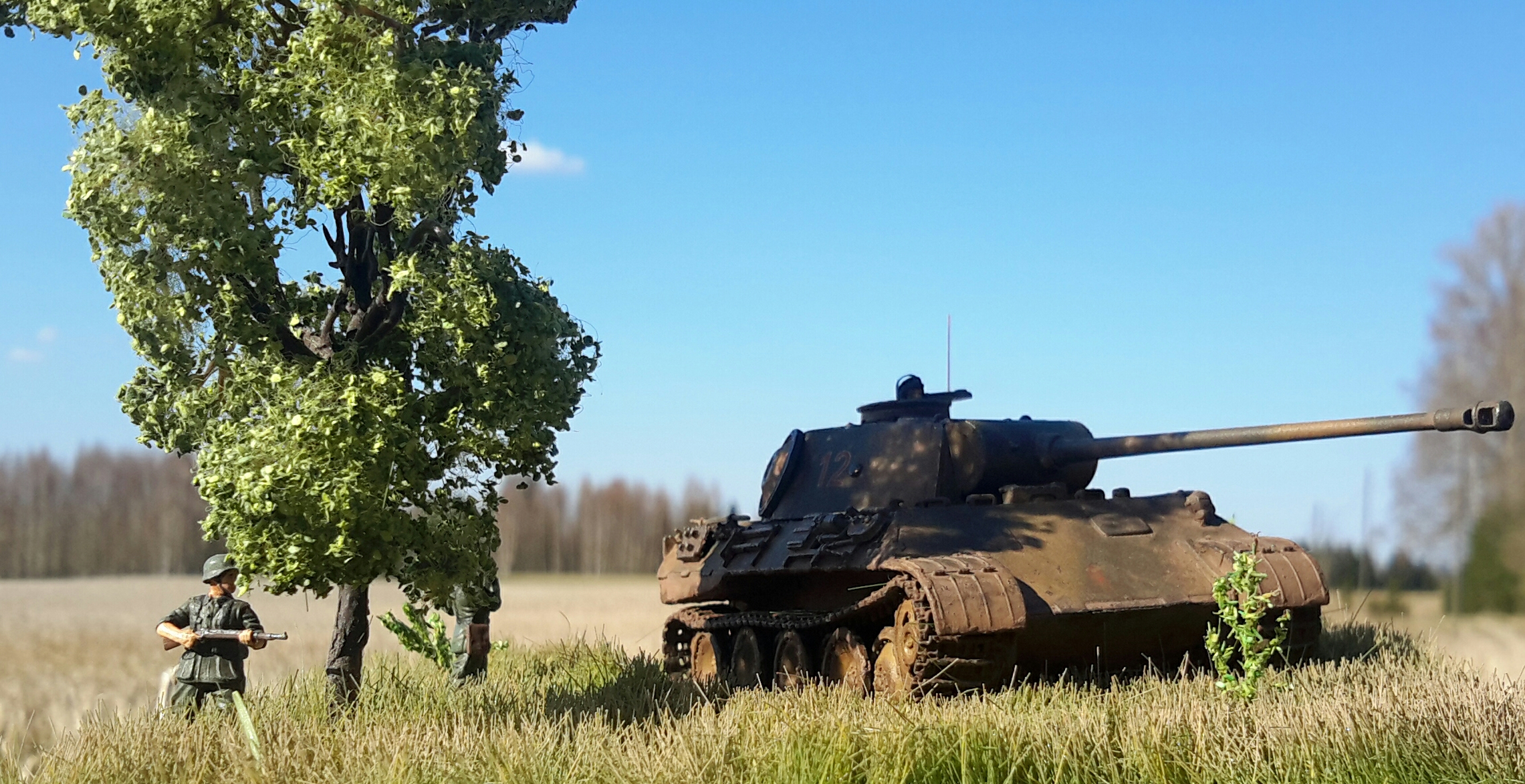 Alustuseks on Panther Ausf D hiline koos väikese dioraamiga, skaala jätkuvalt 1/72 ja tootjaks Dragon. Tankist on Hasegawa toodetud ja külleltki kehv, samas jalamehed on Zvezda ja hoopis teine tera.