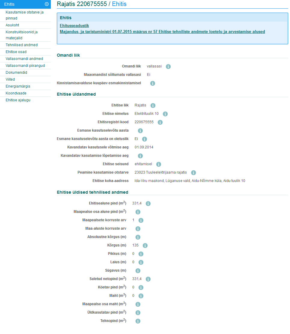 EHR tehnilised andmed TUULIK nr.10