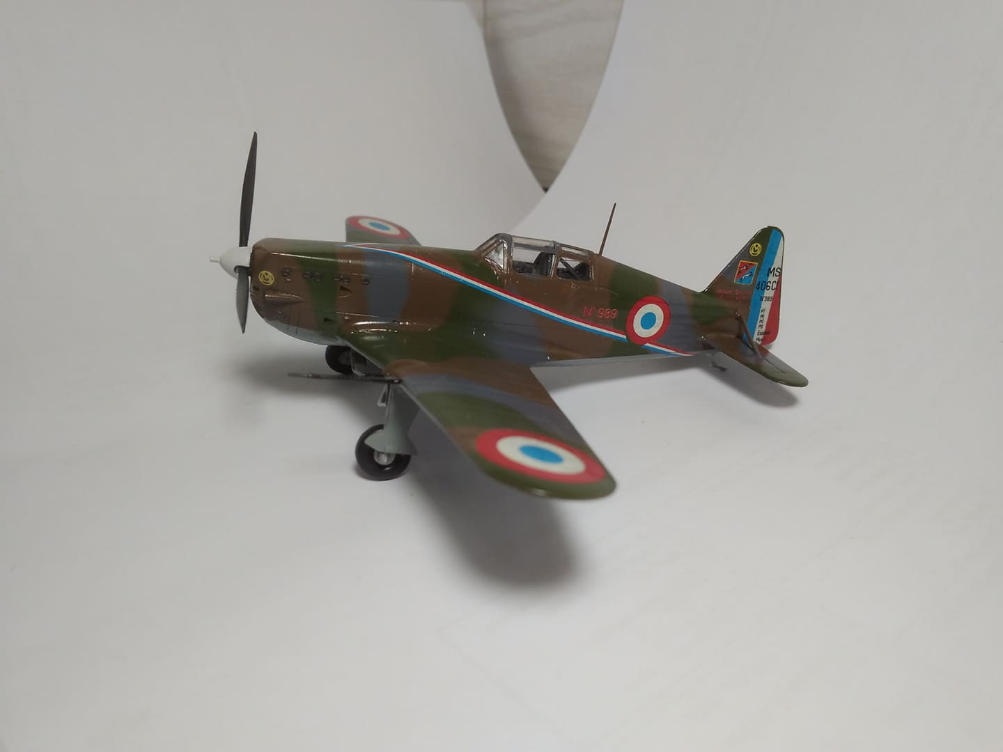 Esmalt siis MS410 (ehk siis erinevus MS406-st on see fikseeritud kõhu all olev õliradiaator ja tiibades 4 kuulipildujat pluss tugevamad tiivad jne). Tootja oli AZUR, 1/72. Soome õhujõududes oli II MS lõppedes kokku 87 MS tüüpi lennukit (neist 11 olid siis MS410, ülejäänud MS406). Kulla sihikuga läks pisut viltu...ja mõne dekaali suutsin ka Micro Soliga liiga läbi niisutada.