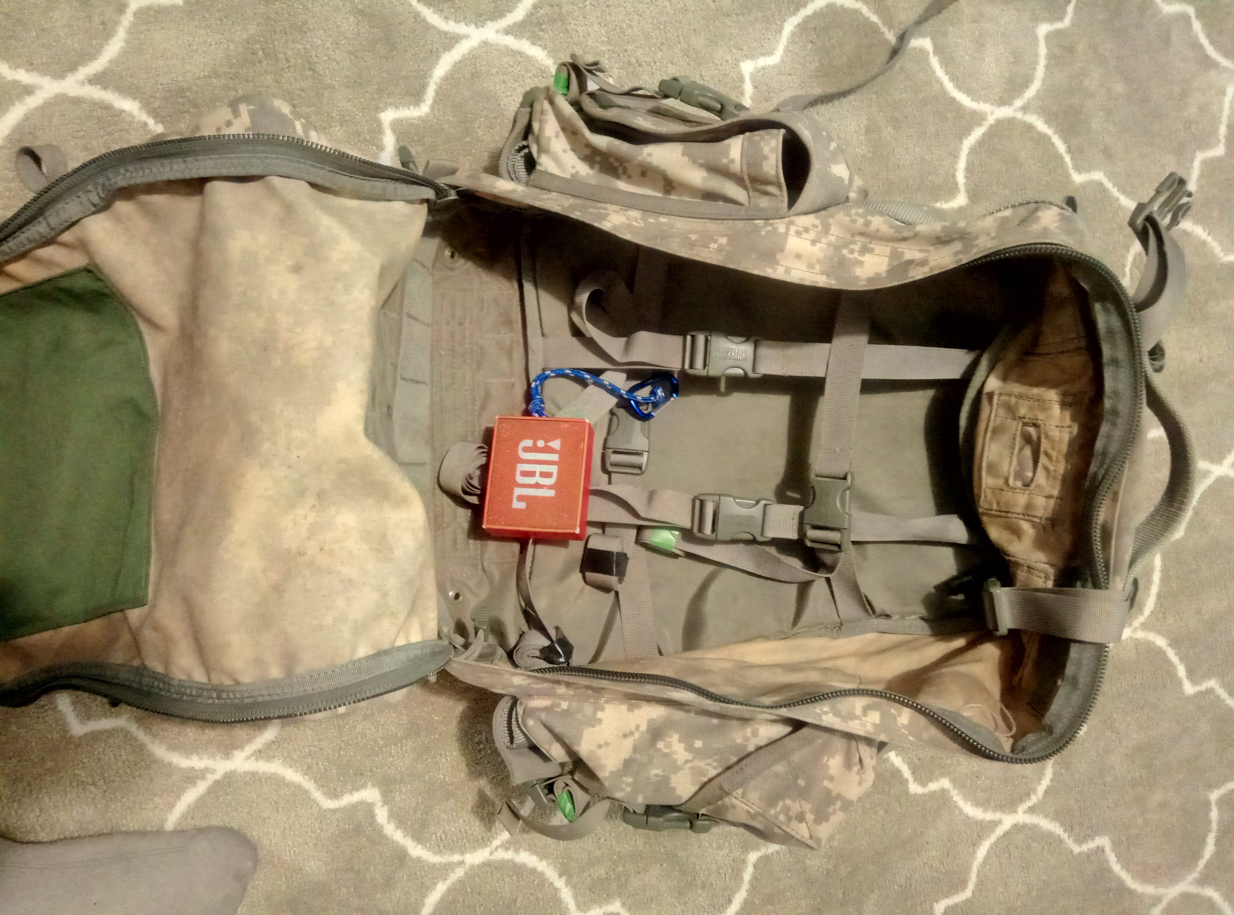 Rihmad ja velcrod sees veekotti jaoks. Üleval on kinnipandavad avad veekotti vooliku jaoks. 1 salvede tasku, 1 pudeli tasku (0.5L Monster energiajook mahub ilusti).