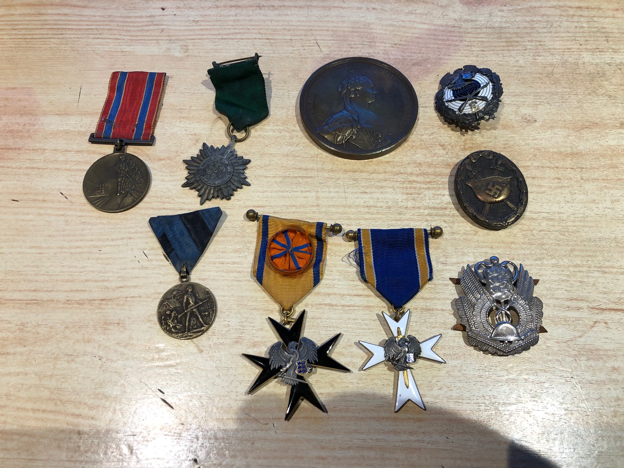 Vasakult: Läti ja Eesti Vabadussõja mälestusmedalid. Saksa II MS Idarist. Kotkarist. Kaitseliidu Valgerist ja Esilaskuri märk. Saksa II MS must Haavatumärk. Paremal all vist mingi KV logistikaga/Varustusvalitsusega? seotud märk. No ja siis veel arvatavasti Vene keisrinna Katariina II Suure(ga) miski medal.