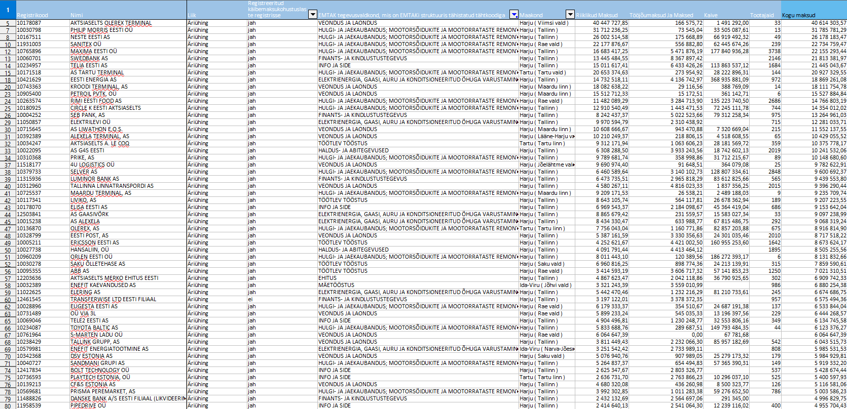 Nagu ma juba varasemalt mainisin, siis aktsiisimaksjaid (tubaka ja kütusefirmad) võiks võrdlusest välja võtta. Töökohti luua on oluliselt keerulisem, kui naftatonne läbi terminali pööritada.Kriku kirjutas:Ma arvan, et "üks suurimaid maksumaksjaid" võiks ikka oluliselt kõrgemaid kohti tähendada.Health kirjutas:Äriühingute raames siis see "peamine" Bolt on 70nes, ehk siis jääb Top 100 sisse.