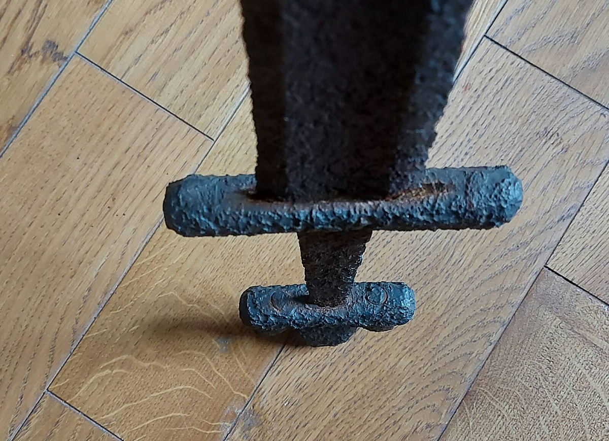 Viikingiaegne mõõk S-tüüpi [Peterseni klassifikatsioon] käepidemega. Umbes 10. sajand. Tera ilmselt tekstiga ULFBERHT. Kui on leitud Eestist, siis ainulaadne, Eestist pole varem leitud S-tüüpi käepidemega mõõku. Ka ULFBERHT mõõgaterasid on mandri-Eestis vähe, ainult üks vist, enamus on Saaremaalt.