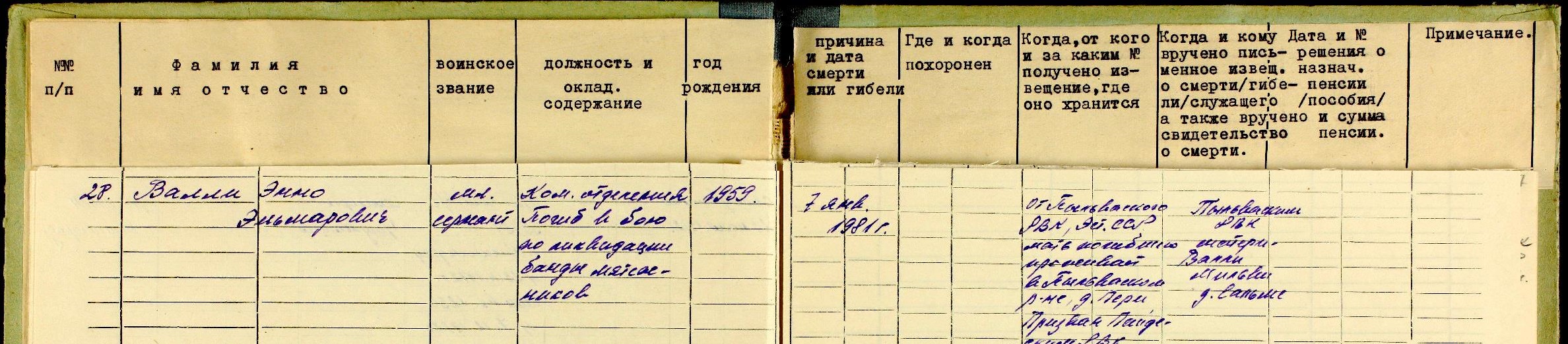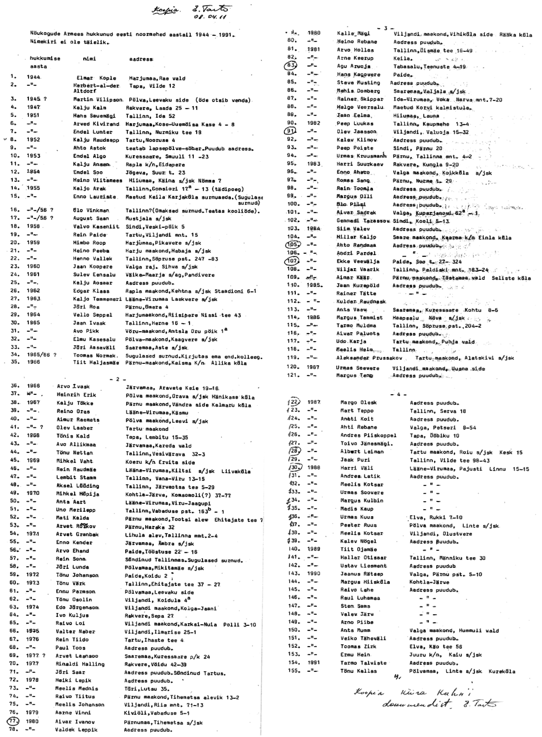 Välja jäävad isikud, kellede kohta minul arhiivimaterjale leida ei õnnestunud (seal on näiteks teada terve pikk nimekiri Afganistanis hukkunuid).