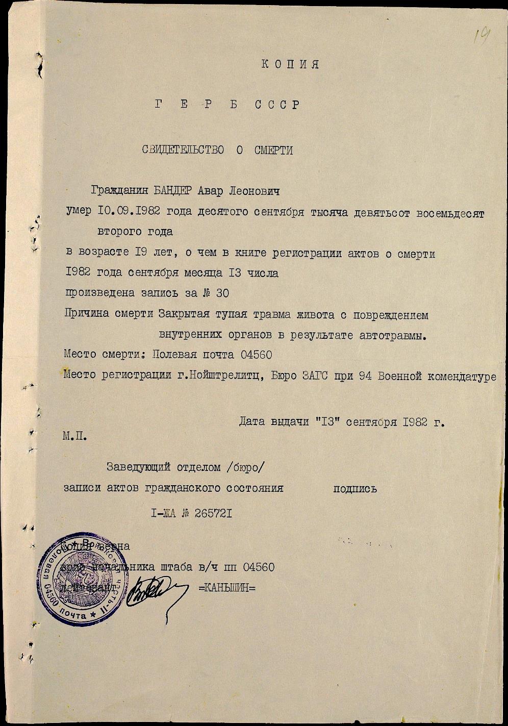 Ametlik surma põhjus: Kõhutrauma koos siseelundite kahjustusega ("autotrauma" (автотравма))