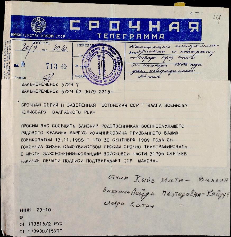https://arhiiv.err.ee/vaata/teist-ja-teile-18694Saates räägivad 1990. a jaanuaris sõjaväes hukkunud Margus Hiisküla vanemad ja kohtuekspert dr Jüri Kool. Reporter Kiira Kahn.