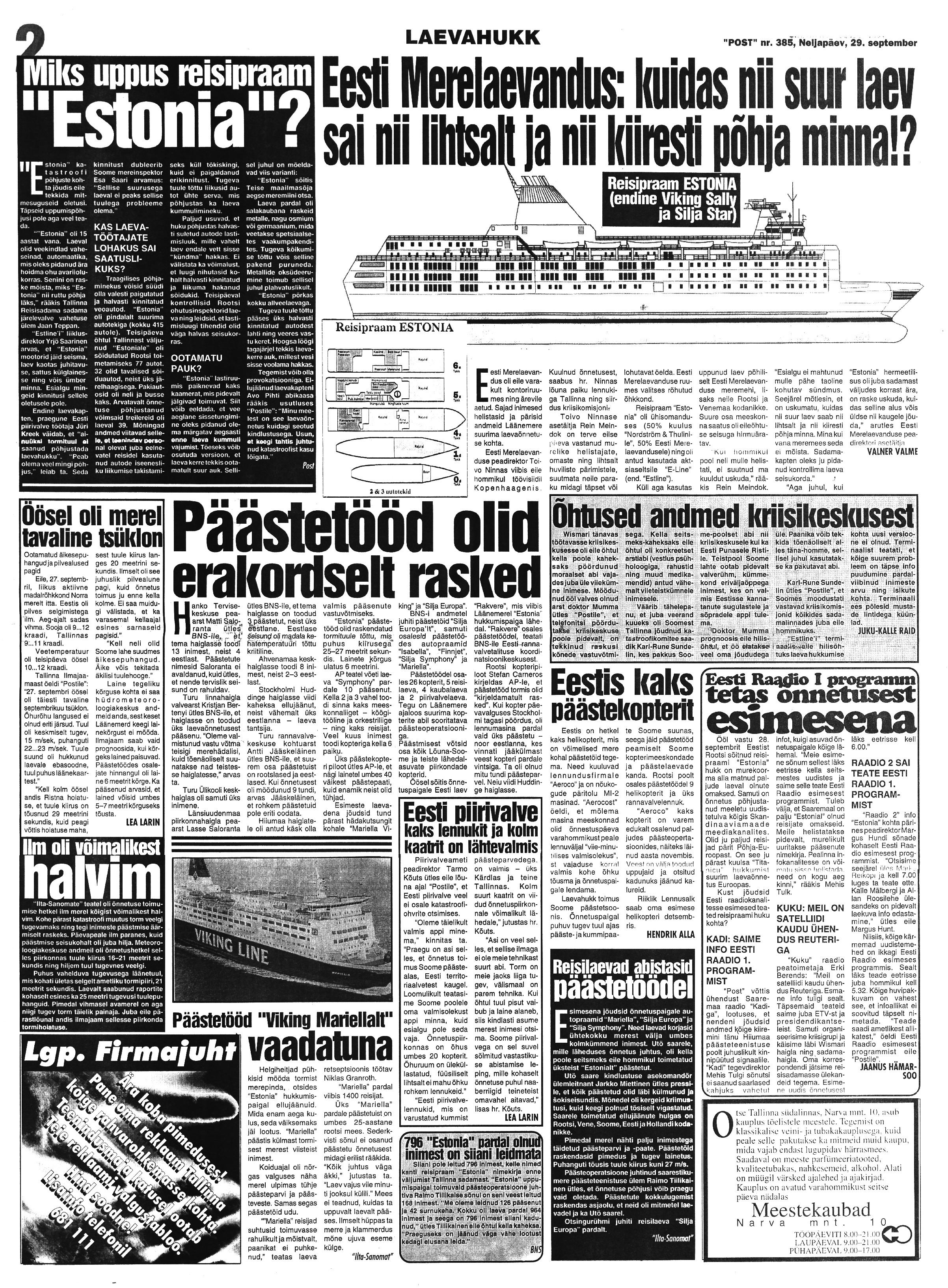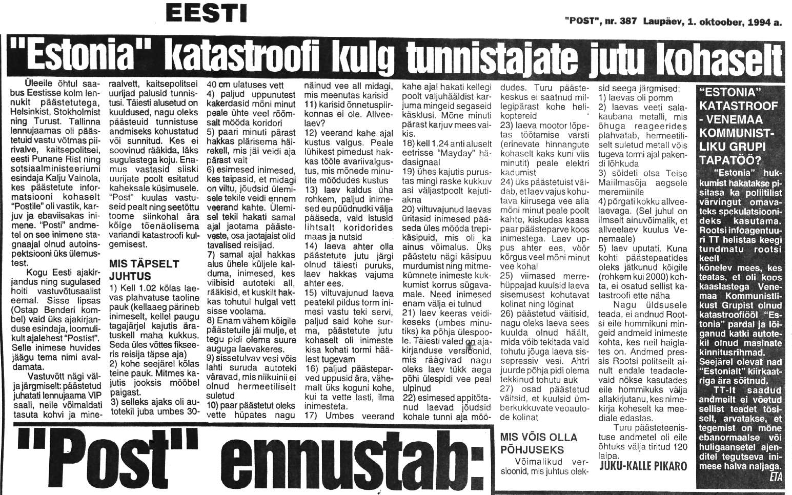 Ghostship kirjutas:Esimesed päevad domineeris vähemalt Eesti meediaruumis teooria, et autodekil olnud kaubaautod läksid tormis liikvele ja kallutasid laeva külili. Visiiri teema tuli natuke hiljem? Seda võiks vanadest lehtedest täitsa järgi vaadat millal Bildti jutt põhiteooriaks muutus.