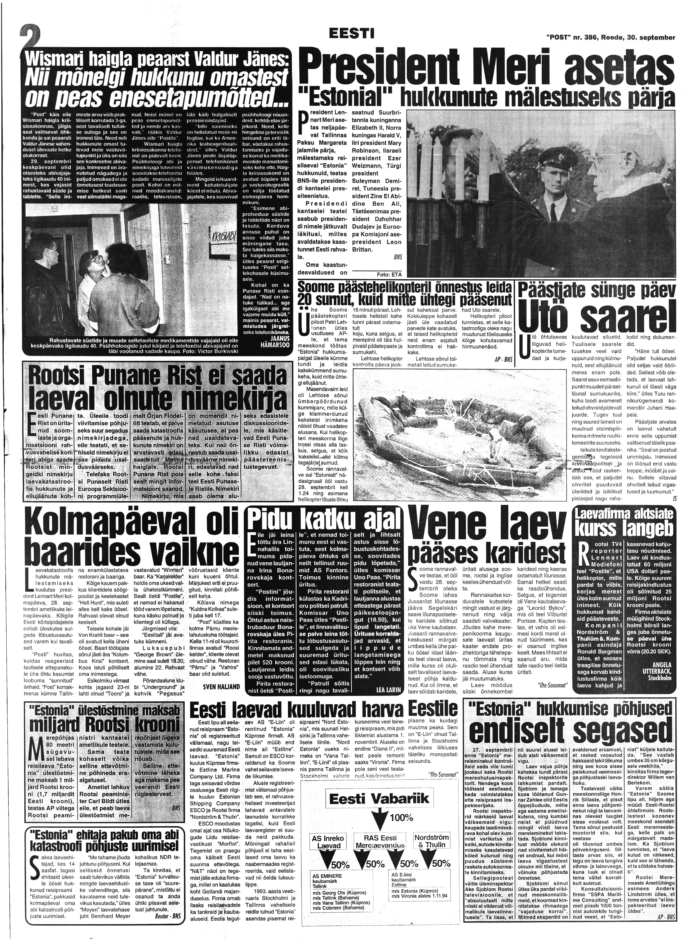 Ghostship kirjutas:Esimesed päevad domineeris vähemalt Eesti meediaruumis teooria, et autodekil olnud kaubaautod läksid tormis liikvele ja kallutasid laeva külili. Visiiri teema tuli natuke hiljem? Seda võiks vanadest lehtedest täitsa järgi vaadat millal Bildti jutt põhiteooriaks muutus.
