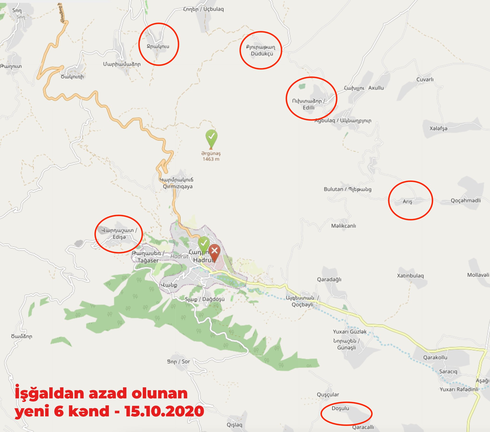 Hadrutist kirdes olevad mäed said aserid 14.okt 2020 ära vallutatud.