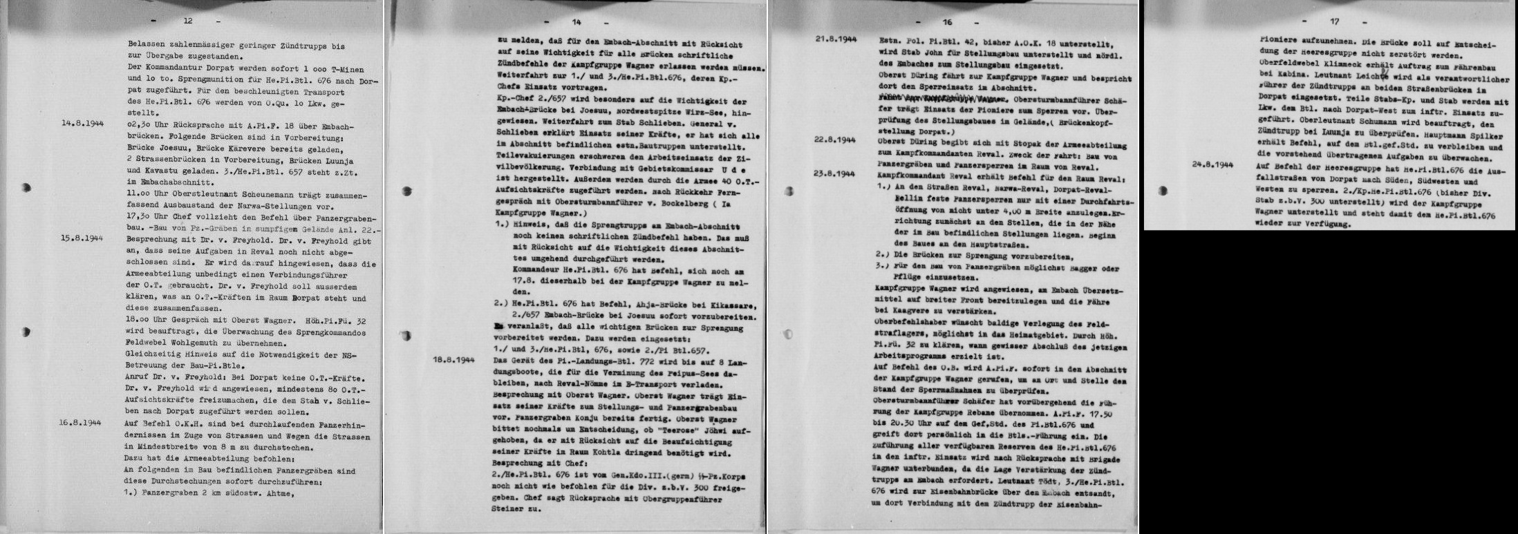 Lt. Tödt (3.Kp Pi.Btl 676) saadetakse Emajõe raudteesillale ühenduse loomiseks raudteepioneeride lõhkamisgrupiga. Sild peab jääma purustamata vastavalt “Nord“ käsule.
