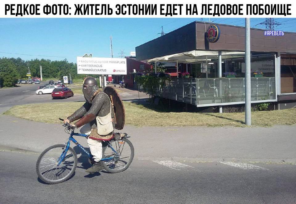mark twaini ´jänki kuningas arthuri õukonnas´ oli stseen, kui rüütlid jalgratastel lahingusse saabusidMudakoon kirjutas:Eesti elanik liigub "Jäälahingusse"