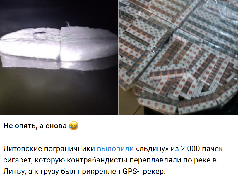 Lühitõlge : Valgevene suunalt tulevad jääpangad sisaldavad sigarette ja GPS träkkerit.