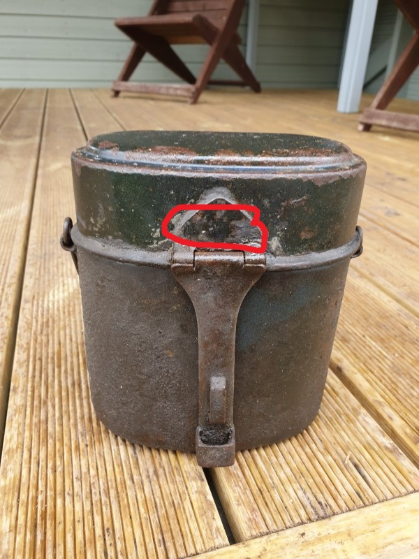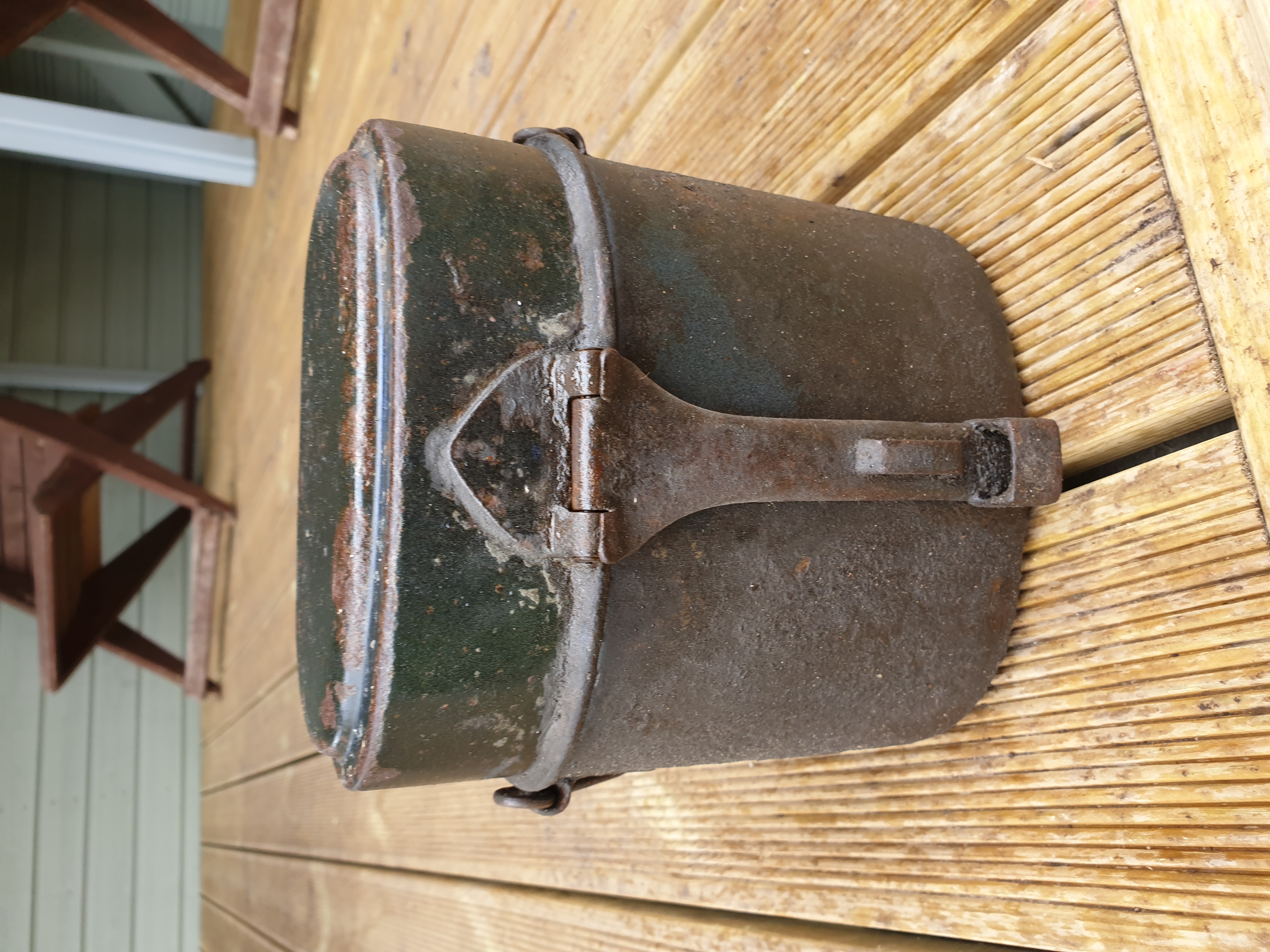 Katelok üleni rauast ja emailitud. Kas võib olla m1910 mudeliga või on hilis sõja aegne. Ei ole veel õiget kohta üles leidnud kust numbreid otsida. Sees on veel hea kiht tavotti mis oleks vaja jätte saada.. kas kuumapuhuriga oleks mõistlik proovida?