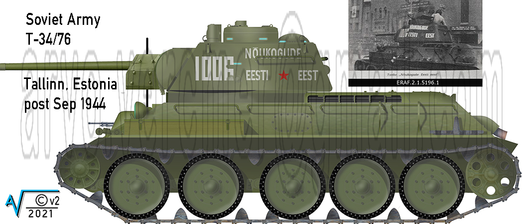 Nüüd siis sellest T-34/76 tankist "Nõukogude Eesti eest" - päris hea on saanud, kuid kuna sa mainisid, et oled täpsuse osas väga pedantne viitaksin veel paarile asjale, esiteks mootori õhuvõtteavade katte tornipoolne külg ei ole originaalis 90 kraadi vaid mingi nurga all. Teiseks (võib olla mulle lihtsalt tundub) paistab suurtükk kuidagi suurevõitu. Sellel pildil (pole küll päris sama masin) peaksid mõlemad näha olema: https://www.worldwarphotos.info/gallery ... 4-hex-244/ ja väike täpsustus ka joonisega.